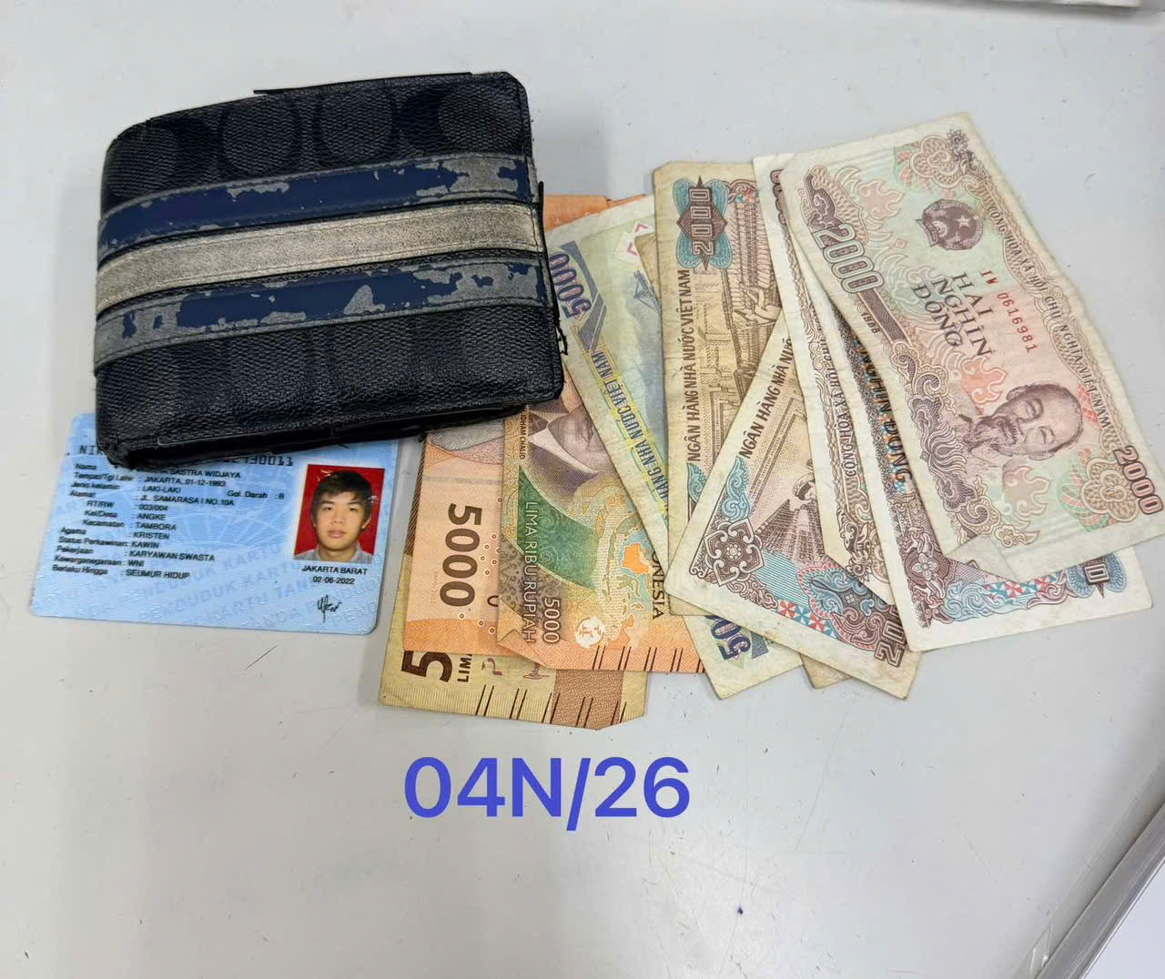 Ngày tiếp nhận: 02/01/2026 Mã hồ sơ: 04N2026 Mô tả: 01 ví da nam màu đen có: 20.000 tiền Indonesia, 17.000VNĐ, thẻ ngân hàng và giấy tờ. |