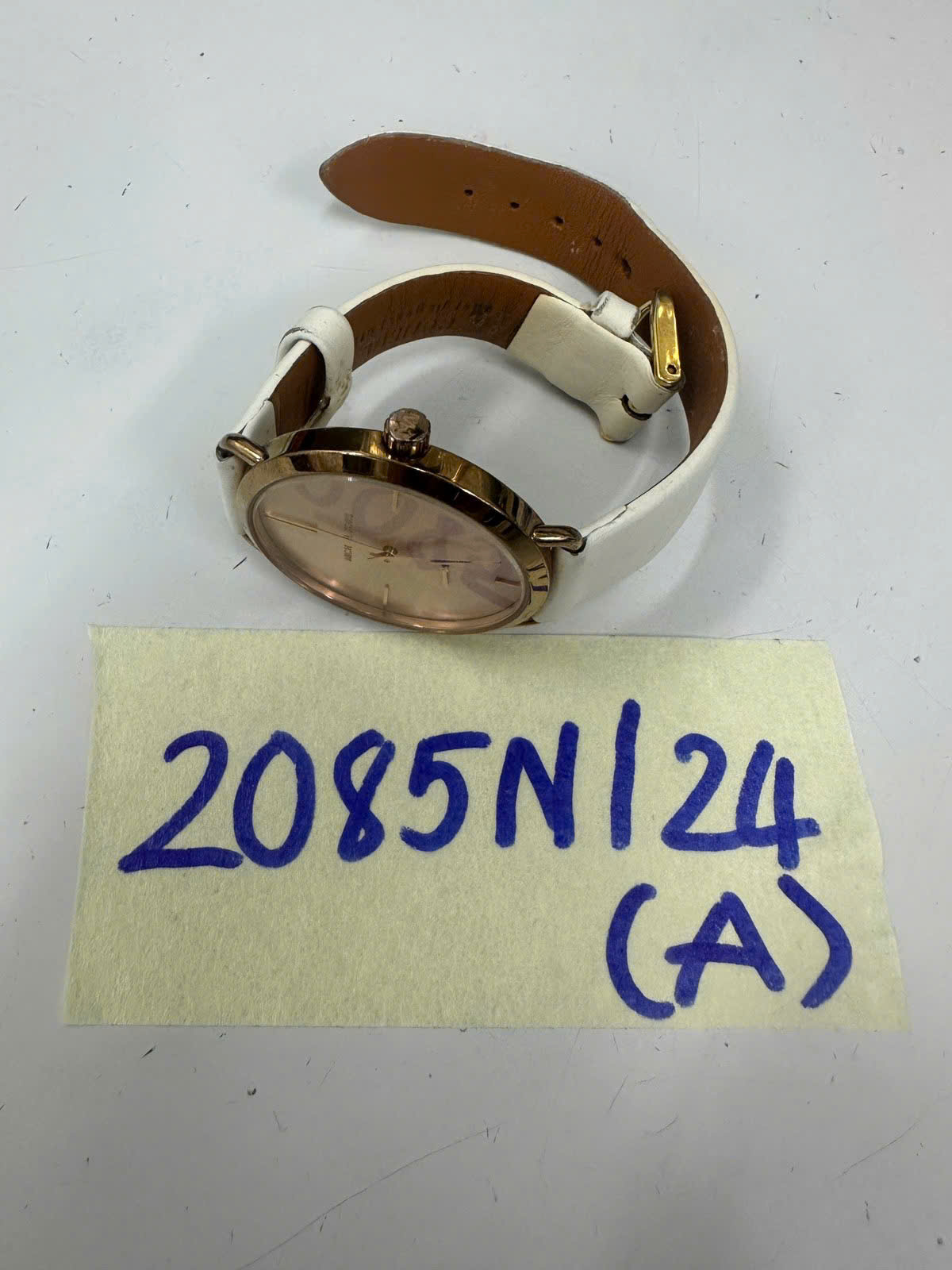 Ngày tiếp nhận: 04/12/2024 Mã hồ sơ: 2085N2024A Mô tả: 01 đồng hồ kim loại mặt tròn màu hồng có chữ MICHAEL KORS, dây da màu trắng. |