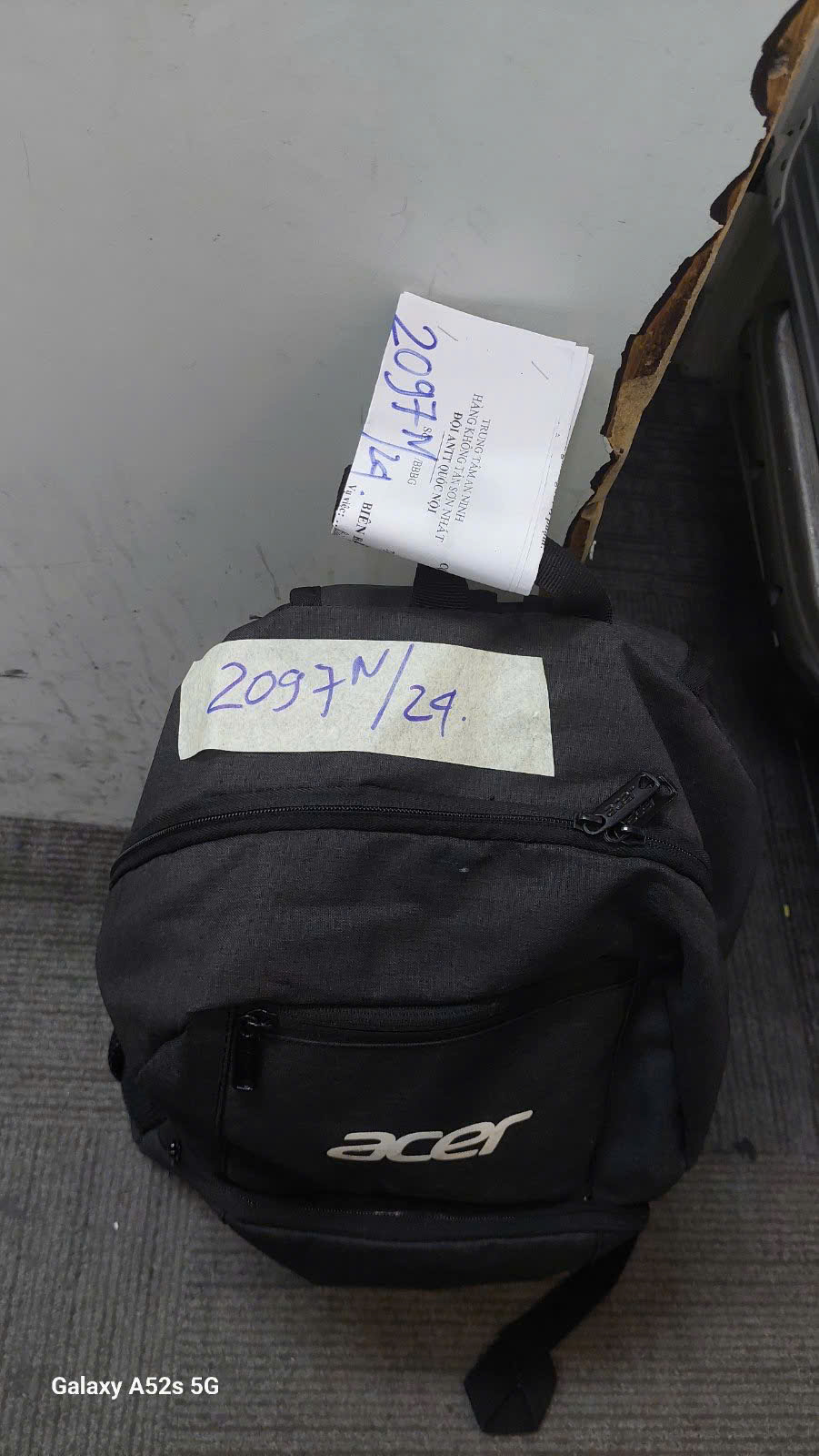 Ngày tiếp nhận: 05/12/2024 Mã hồ sơ: 2097N2024 Mô tả: 01 balo màu đen có quần áo cũ qua sử dụng, 01 cục sạc SAMSUNG, đồ dùng cá nhân qua sử dụng. |
