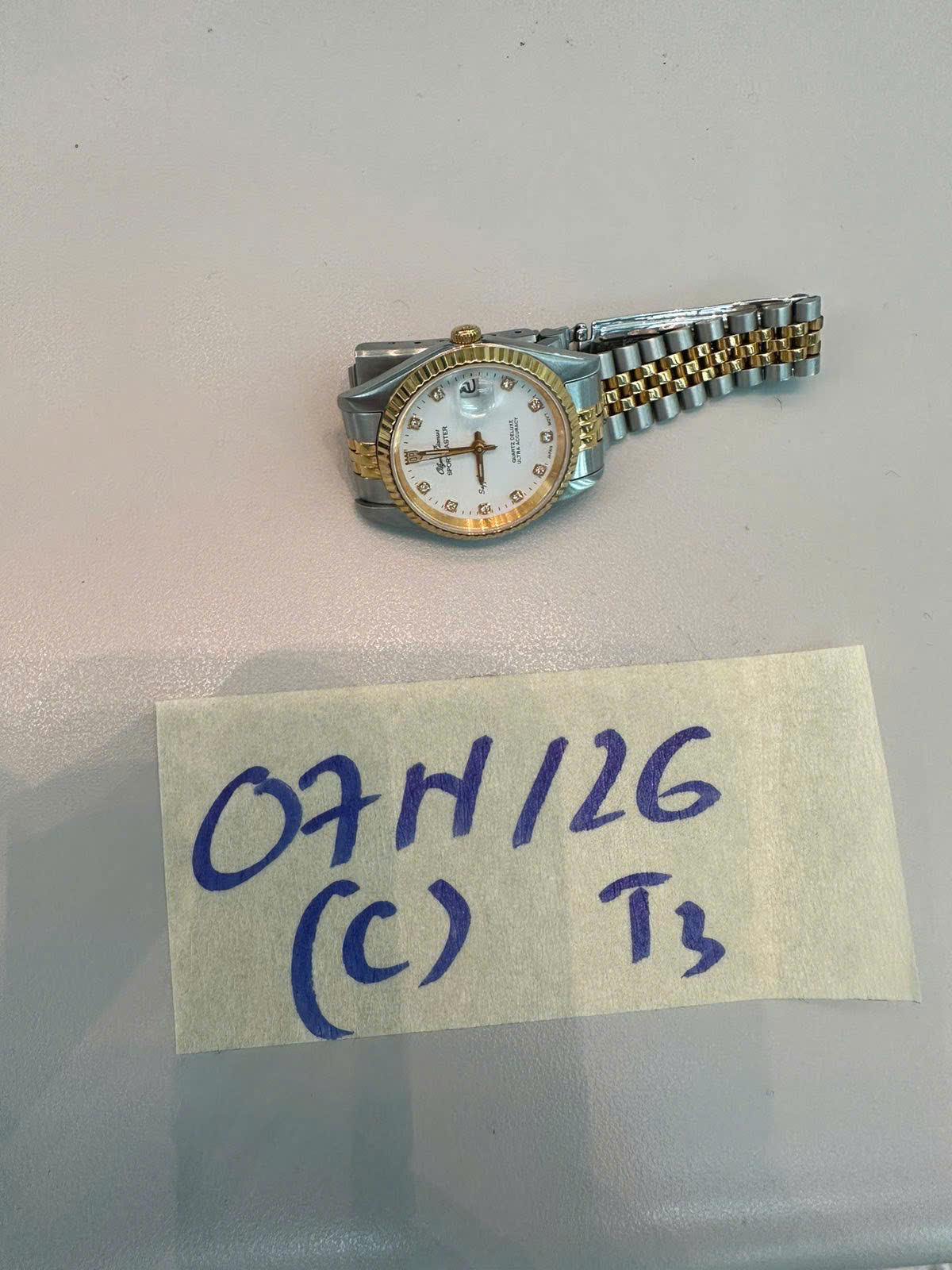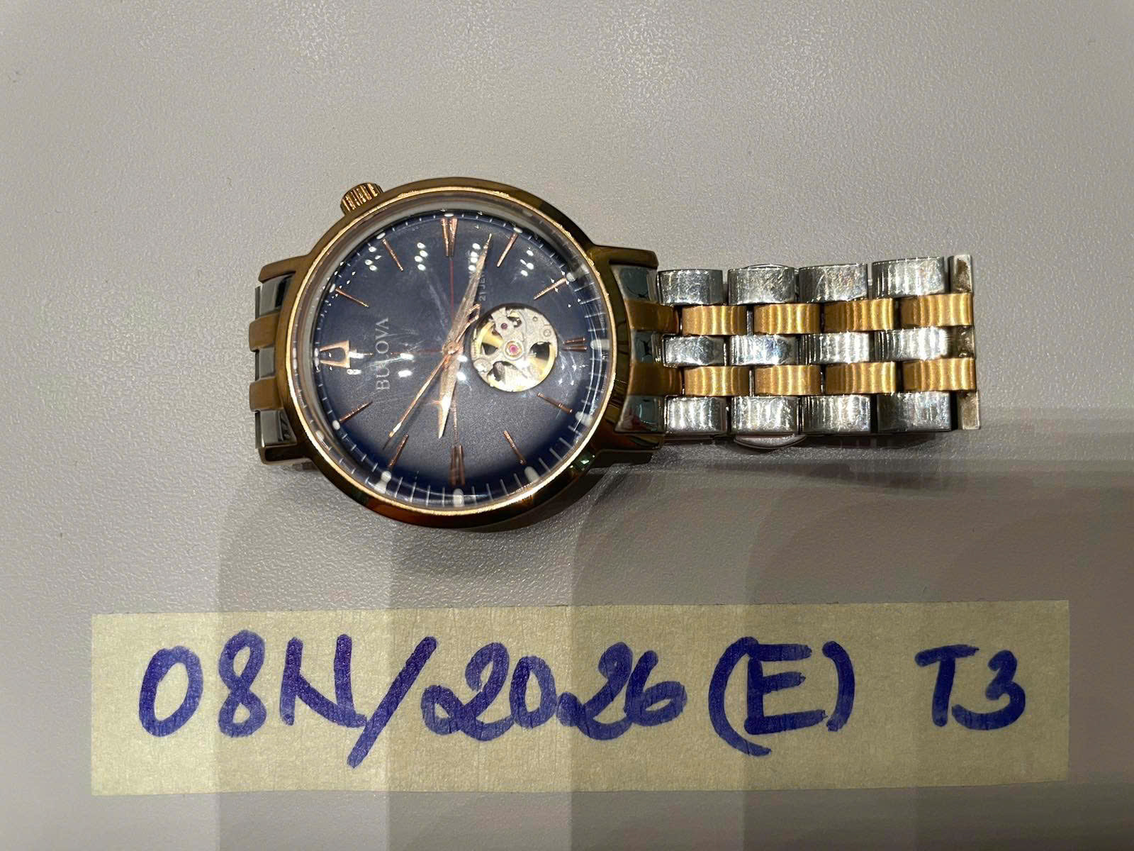 Ngày tiếp nhận: 06/01/2026 Mã hồ sơ: 08N2026E Mô tả: 01 đồng hồ màu trắng viền vàng có chữ "Bulouci". |