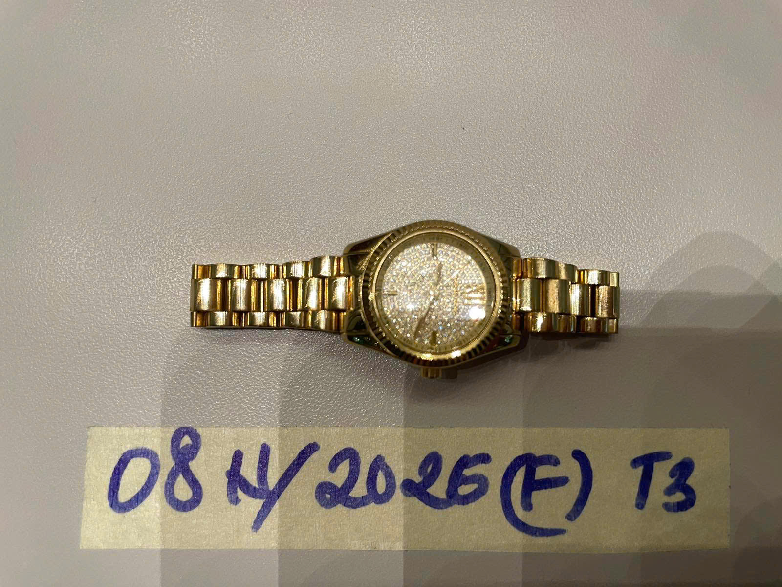 Ngày tiếp nhận: 06/01/2026 Mã hồ sơ: 08N2026F Mô tả: 01 đồng hồ màu vàng có chữ "Michael Kors". |