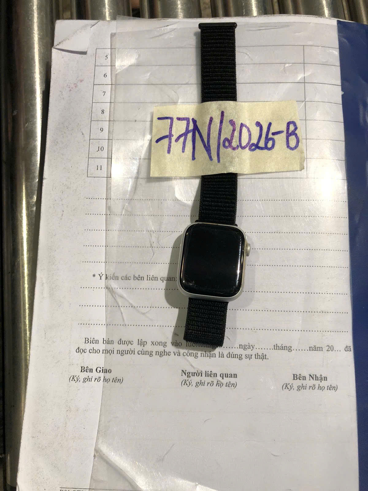 Ngày tiếp nhận: 17/01/2026 Mã hồ sơ: 77N2026B Mô tả: 01 đồng hồ thông minh mặt hình vuông màu đen viền trắng mặt sau có chữ APPLE WATCH SERIES 8, dây đeo bằng vải màu đen. |
