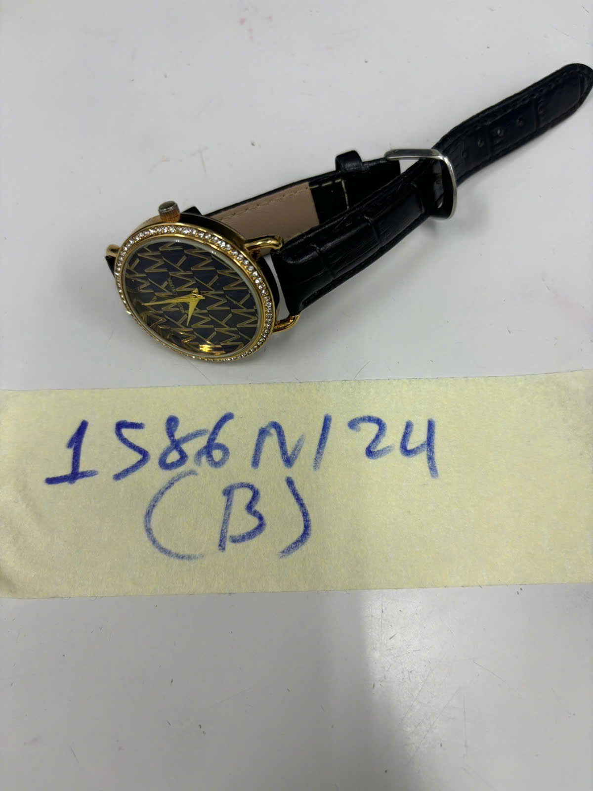Ngày tiếp nhận: 19/9/2024 Mã hồ sơ: 1586N2024B Mô tả: 01 đồng hồ màu vàng, mặt màu xanh chữ Micheal Kors. |