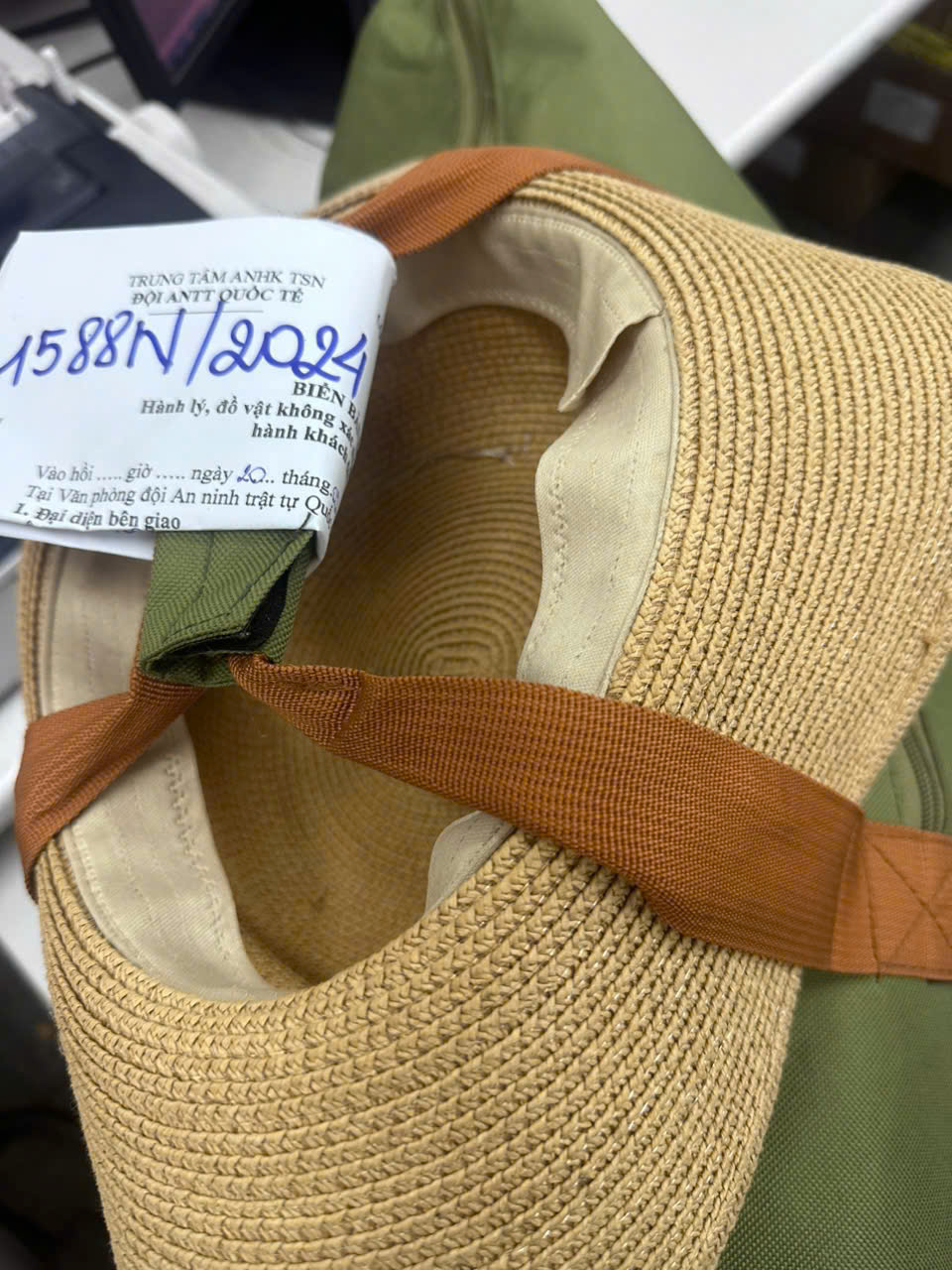 Ngày tiếp nhận: 20/9/2024 Mã hồ sơ: 1588N2024 Mô tả: 01 túi xách tay bằng vải màu xanh lá có đồ dùng cá nhân qua sử dụng. |