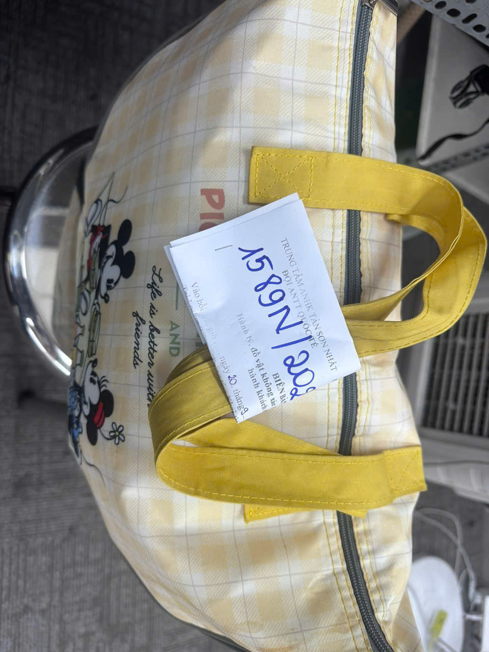 Ngày tiếp nhận: 20/9/2024 Mã hồ sơ: 1589N2024 Mô tả: 01 túi xách tay bằng vải màu kem có quần áo đồ dùng cá nhân qua sử dụng. |