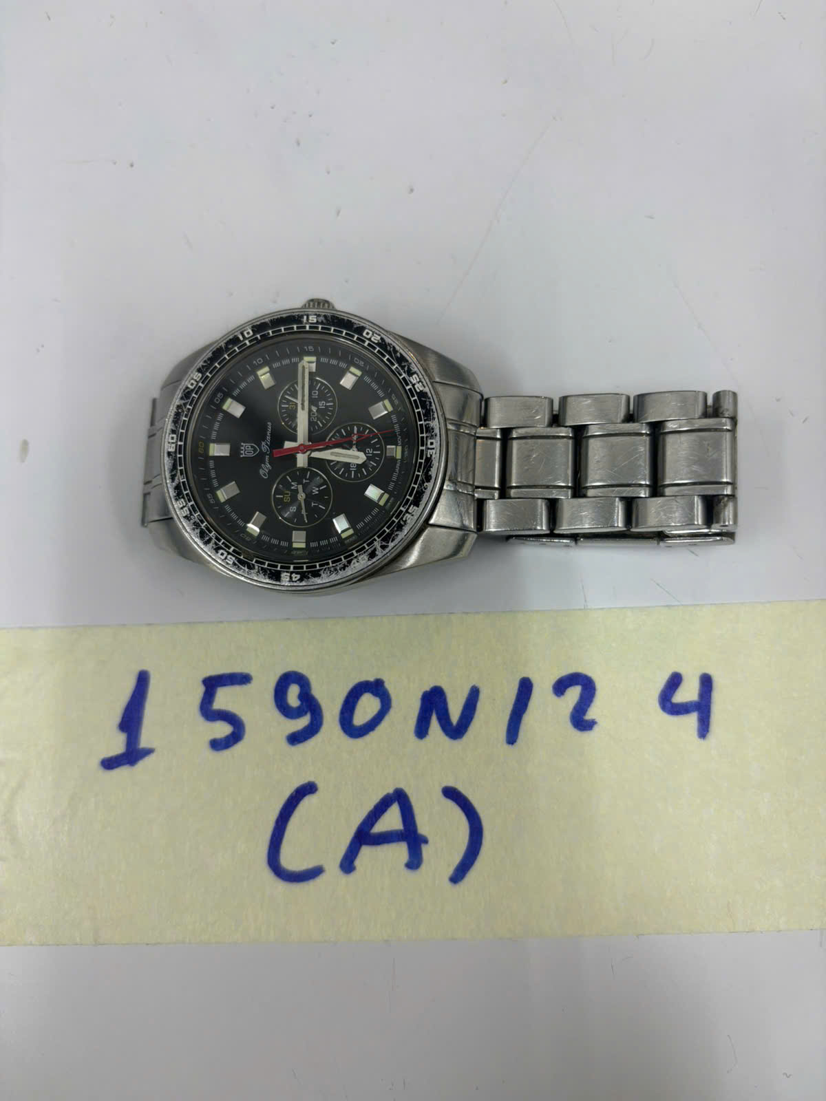 Ngày tiếp nhận: 20/9/2024 Mã hồ sơ: 1590N2024A Mô tả: 01 đồng hồ KL màu bạc chữ “olym pianus”. |