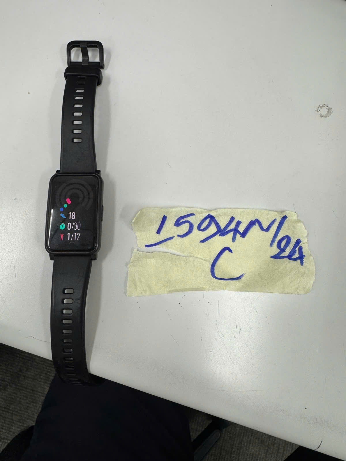 Ngày tiếp nhận: 21/9/2024 Mã hồ sơ: 1593N2024C Mô tả: 01 đồng hồ đeo tay thông minh màu đen, dây đeo cao su màu đen có chữ MI. |