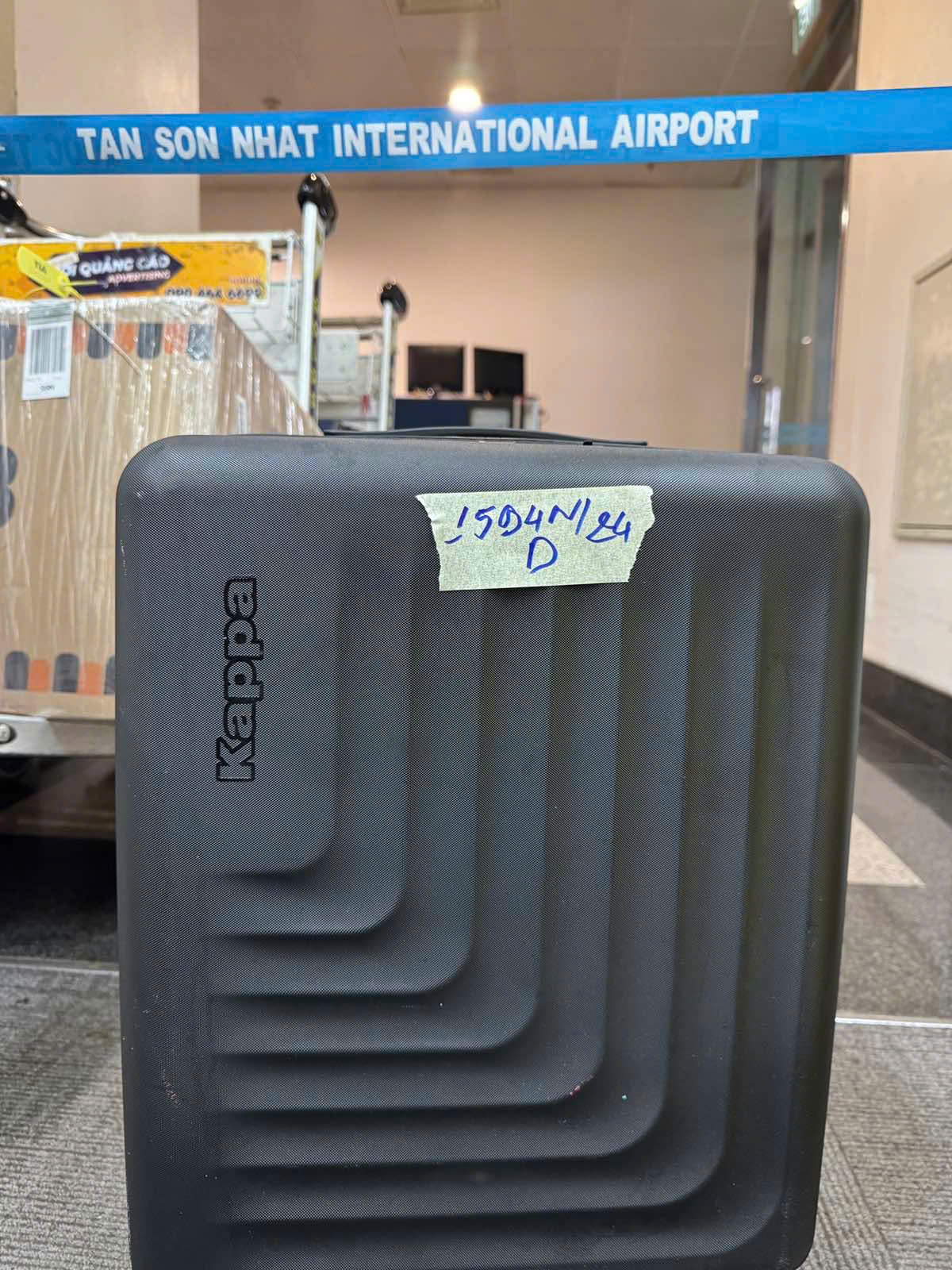 Ngày tiếp nhận: 21/9/2024 Mã hồ sơ: 1594N2024D Mô tả: 01 vali đen chữ KAPPA, có tag Vietjet bên trong có 01 balo chữ TUMI bên trong balo không có gì; 01 gói café Mr.Viet và đồ dùng cá nhân. |