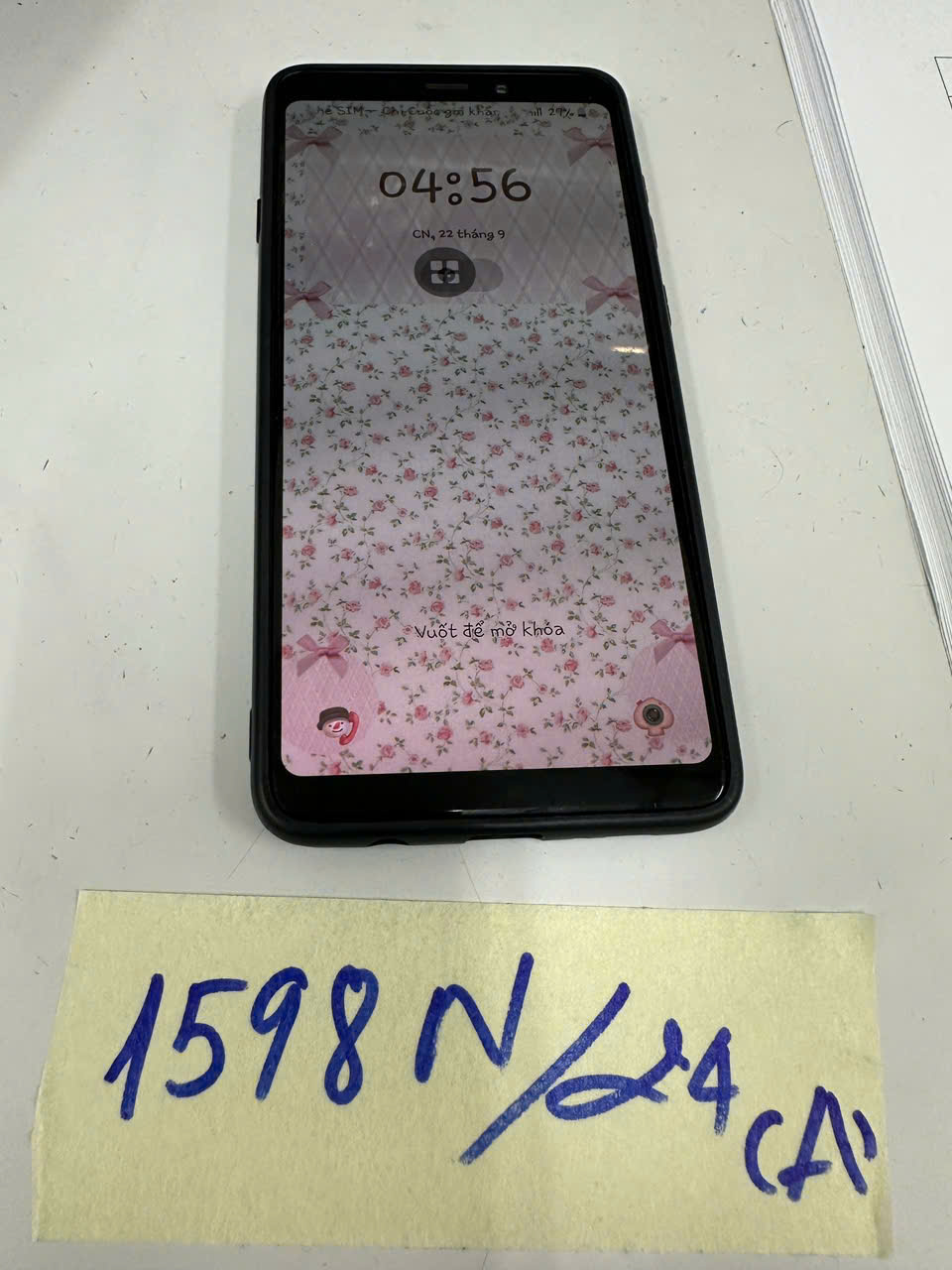 Ngày tiếp nhận: 21/9/2024 Mã hồ sơ: 1598N2024A Mô tả: 01 điện thoại SAMSUNG màu xanh bị nứt vỡ. |