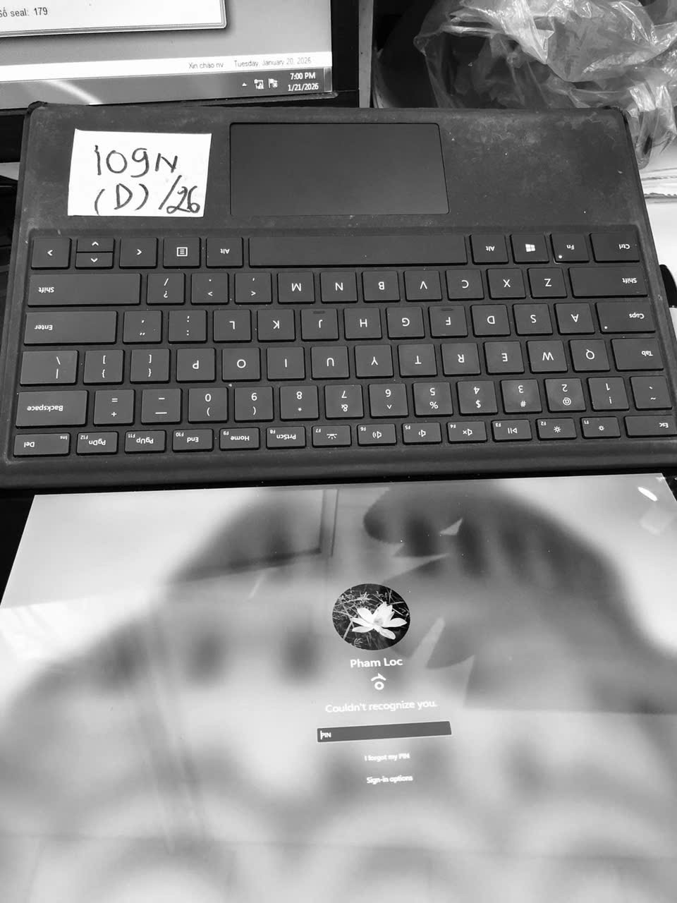 Ngày tiếp nhận: 21/01/2026 Mã hồ sơ: 109N2026D Mô tả: 01 máy tính bảng có chữ MICROSOFT màu đen, kèm bàn phím màu xám. |