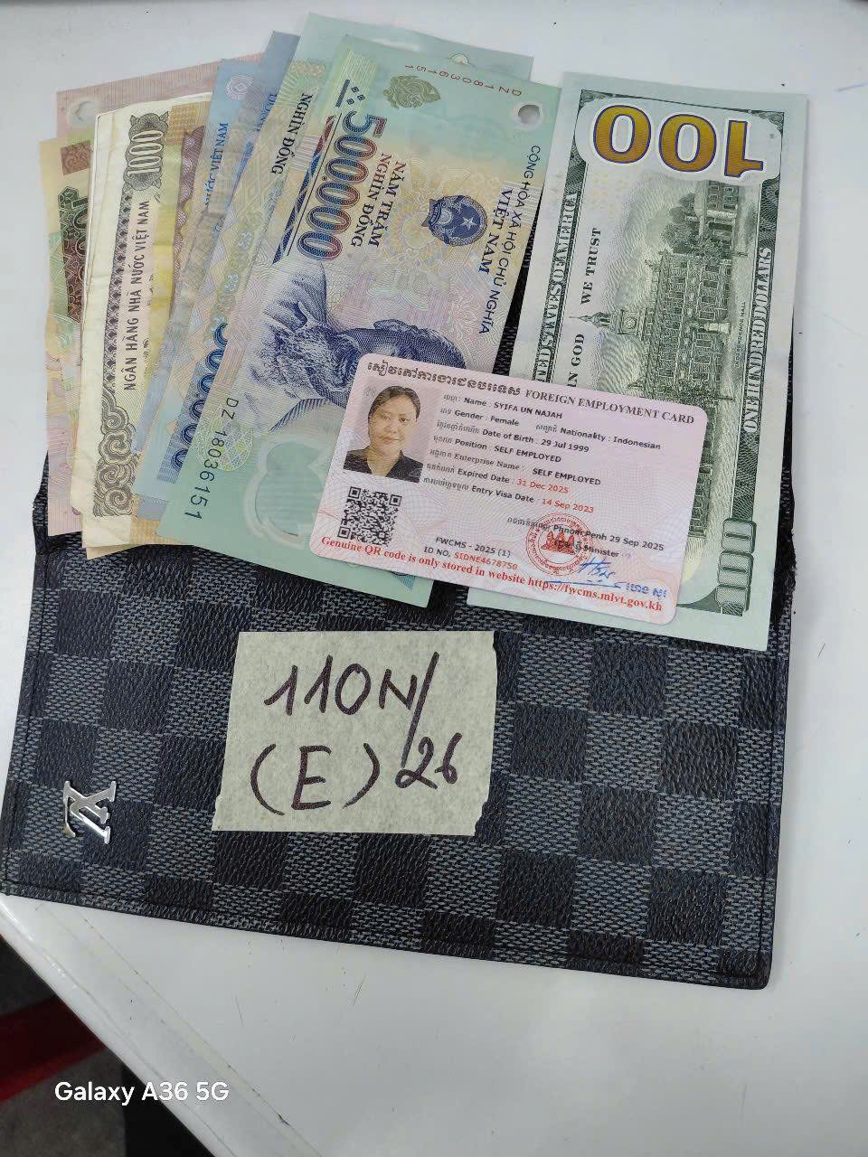 Ngày tiếp nhận: 21/01/2026 Mã hồ sơ: 110N2026E Mô tả: 01 ví tiền màu đen, chất liệu giống da, có chữ LV, bên trong gồm: số tiền tổng giá trị 1.379.000 VND và 100 USD. |