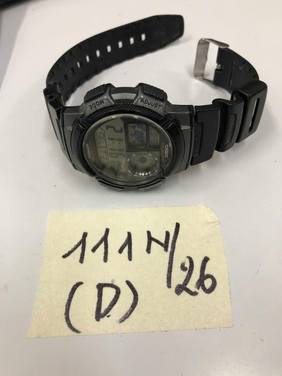 Ngày tiếp nhận: 21/01/2026 Mã hồ sơ: 111N2026D Mô tả: 01 đồng hồ mặt hình tròn màu đen có chữ CASIO, dây đeo cao su màu đen. |
