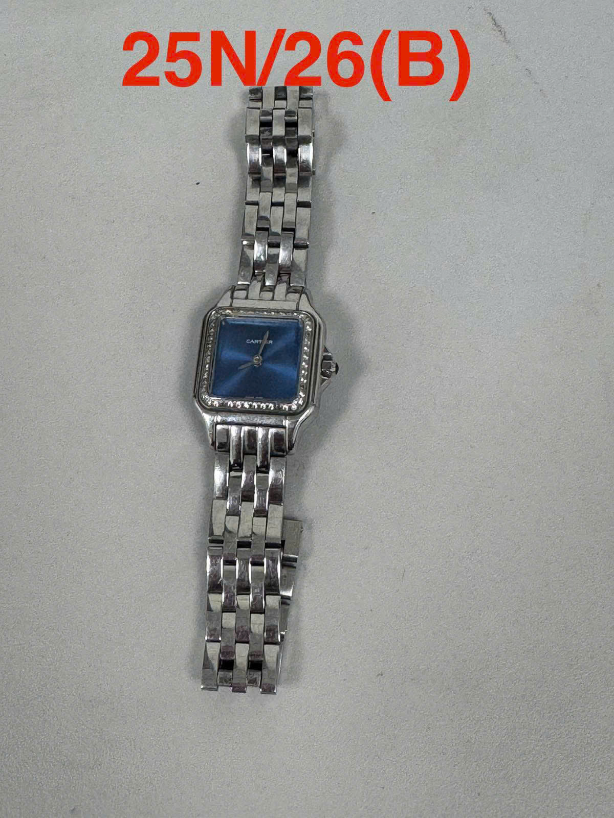 Ngày tiếp nhận: 20/01/2026 Mã hồ sơ: 25N2026B-T3 Mô tả: 01 đồng hồ kim loại bạc mặt vuông chữ Cartier. |