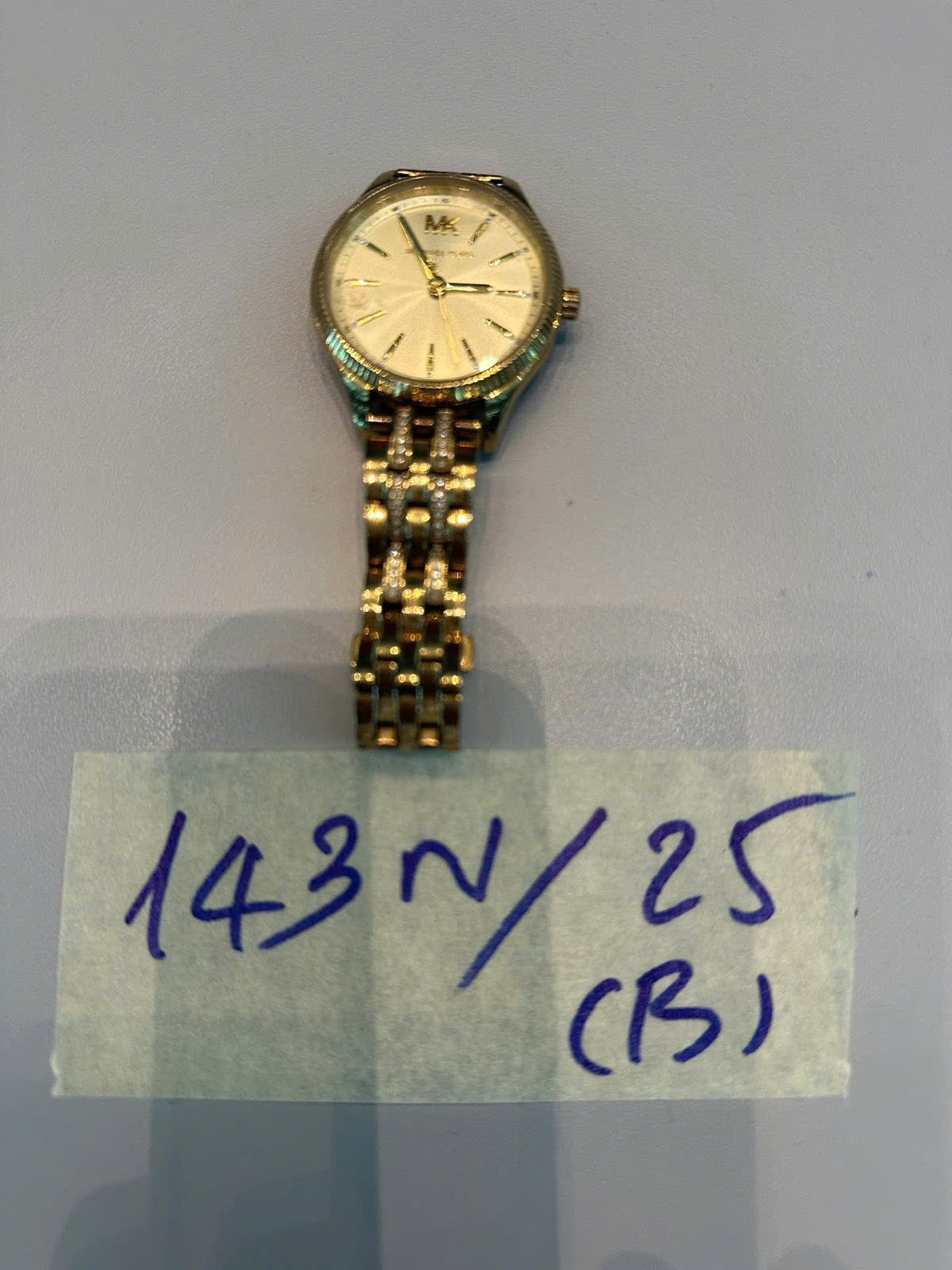Ngày tiếp nhận: 22/12/2025 Mã hồ sơ: 143N2025B Mô tả: 01 đồng hồ kim loại màu vàng hiệu MICHAEL KORS. |