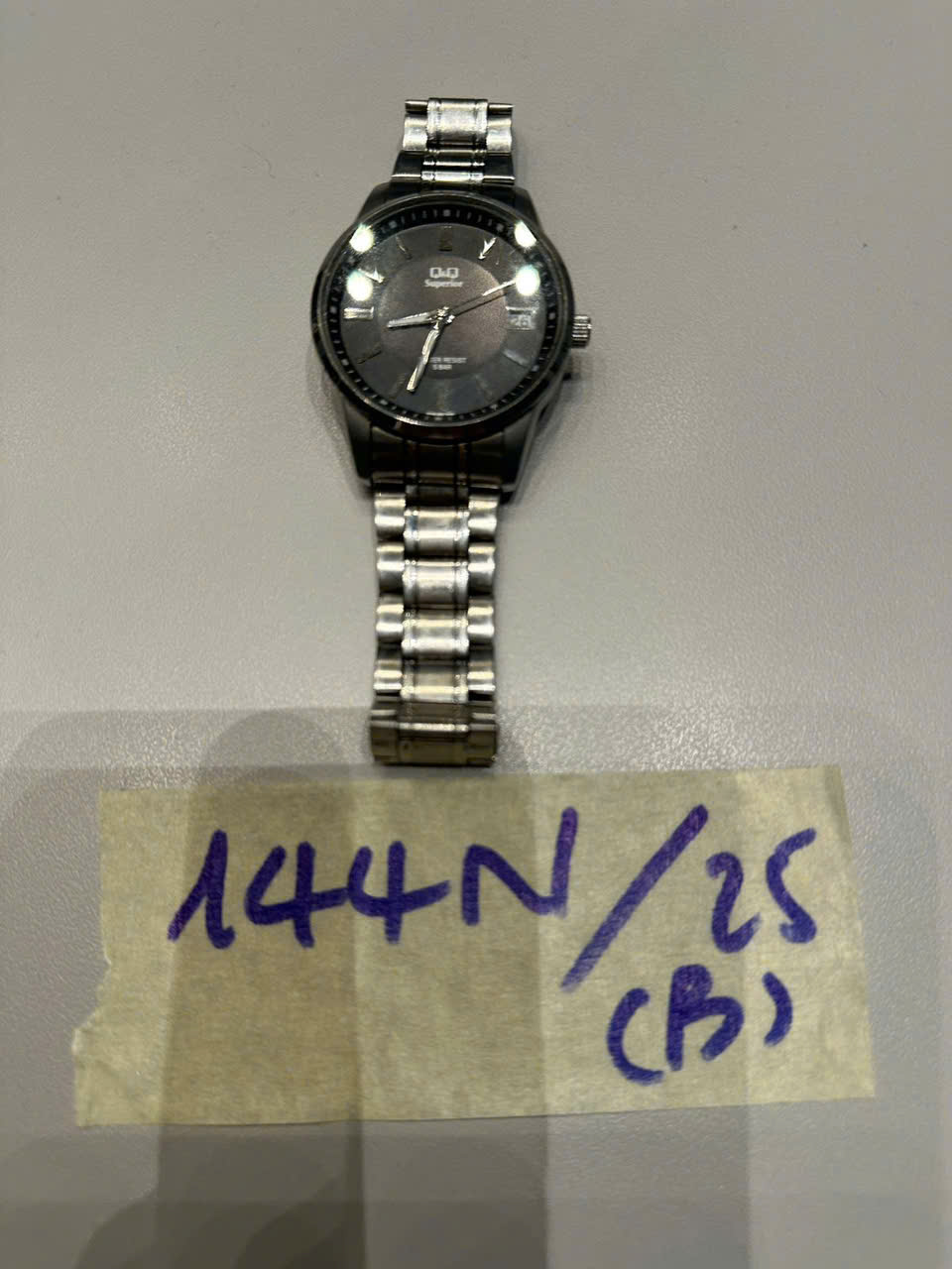 Ngày tiếp nhận: 23/12/2025 Mã hồ sơ: 144N2025B Mô tả: 01 đồng hồ màu bạc có ghi chữ Q8Q SUPERIOR, đã sử dụng. |