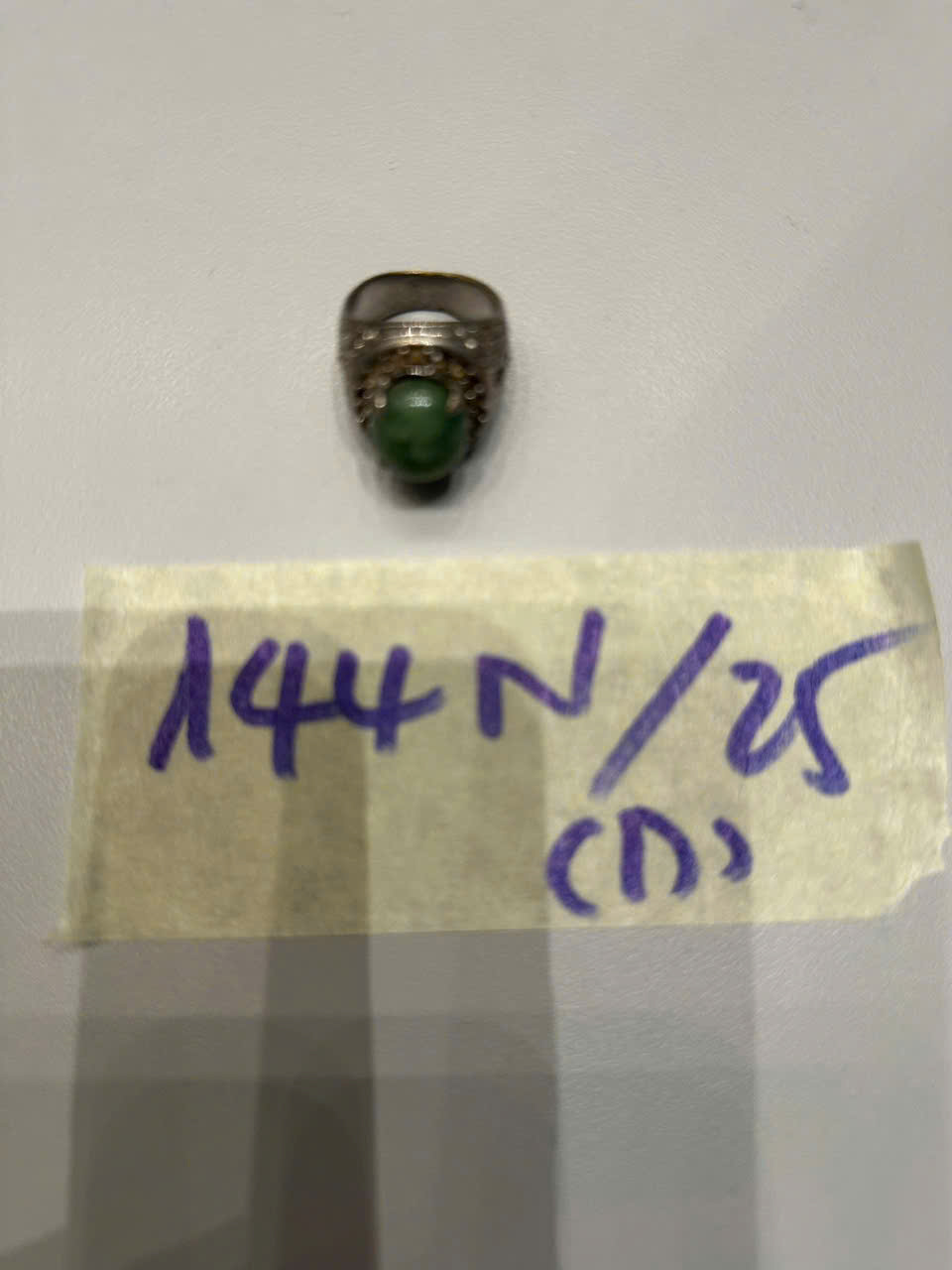 Ngày tiếp nhận: 23/12/2025 Mã hồ sơ: 144N2025D Mô tả: 01 nhẫn kim loại màu trắng, có đính hạt màu xanh, đã sử dụng. |