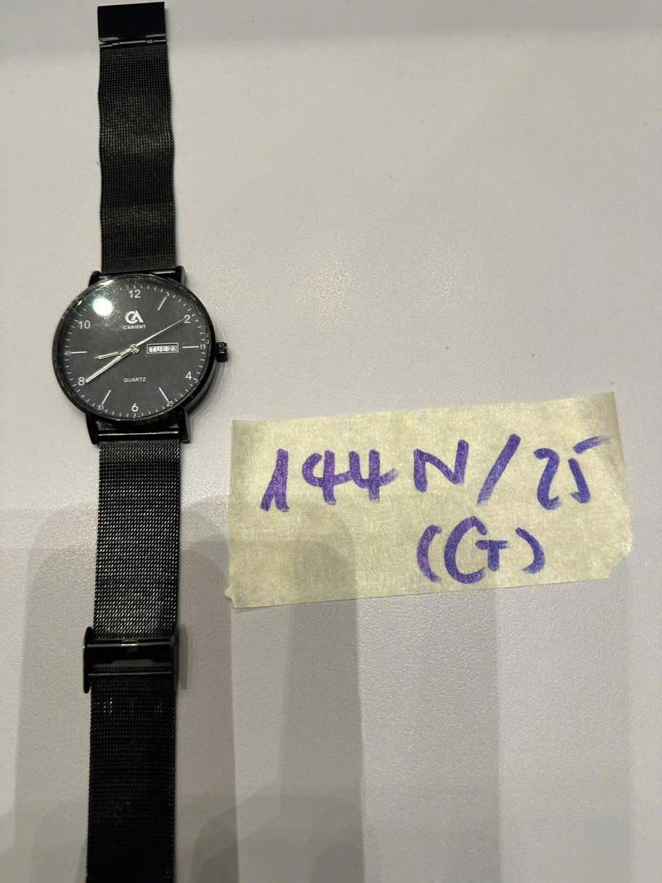 Ngày tiếp nhận: 23/12/2025 Mã hồ sơ: 144N2025G Mô tả: 01 đồng hồ dây kim loại màu đen, mặt tròn, có ghi chữ CARIENT, đã sử dụng. |