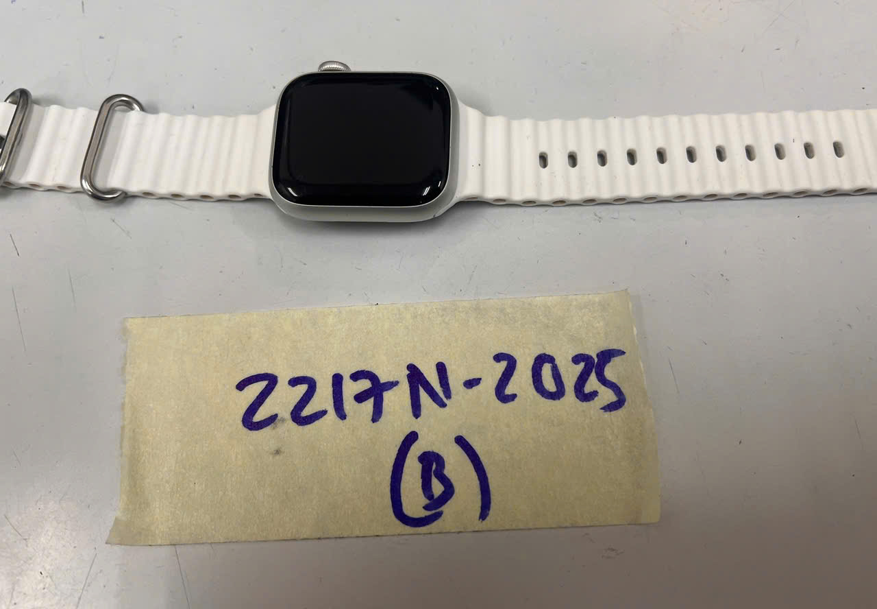 Ngày tiếp nhận: 23/12/2025 Mã hồ sơ: 2217N2025B Mô tả: 01 đồng hồ thông minh SERIES 9 41MM, mặt đồng hồ hình vuông màu đen, dây đồng hồ cao su màu trắng. |