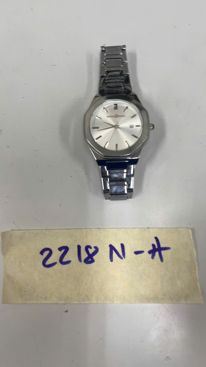 Ngày tiếp nhận: 23/12/2025 Mã hồ sơ: 2218N2025A Mô tả: 01 đồng hồ màu bạc, mặt đồng hồ hình lục giác có chữ MAKA M RAKO, dây kim loại màu bạc. |