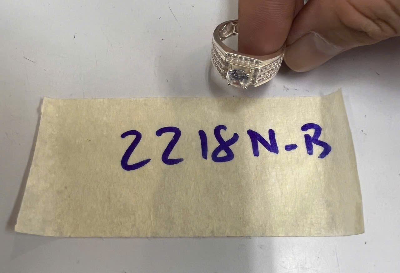 Ngày tiếp nhận: 23/12/2025 Mã hồ sơ: 2218N2025B Mô tả: 01 nhẫn kim loại màu bạc không rõ hiệu, mặt nhẫn đính nhiều đá. |
