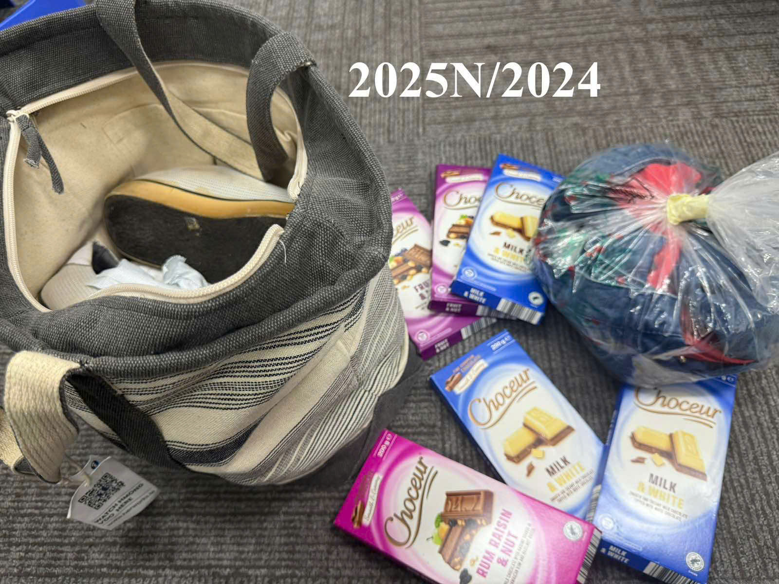 | 8 | 24/11/2024 | 2025N/2024 | 01 túi vải màu xám trắng đựng quần áo, giày dép, chocolates | ANTTQT | ![]() |