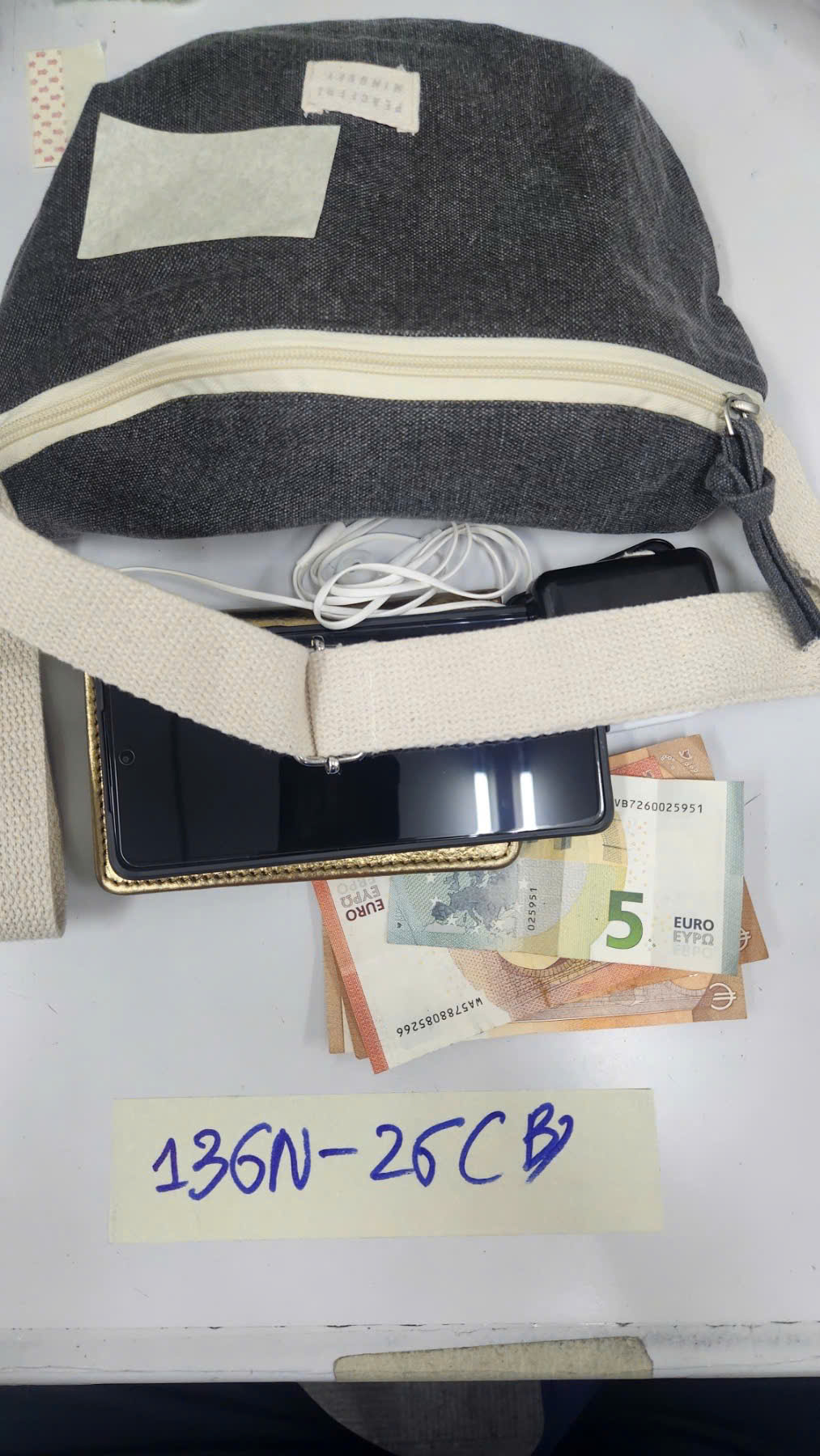 Ngày tiếp nhận: 25/01/2026 Mã hồ sơ: 136N2026B Mô tả: 01 túi màu xám có chữ “PEACEFUL MINDSET”, bên trong túi có: 01 (một) điện thoại màu đen có chữ “Redmi”, IMEI: 864151071742585, ốp lưng màu đen có chữ “Redmi”, bên trong ốp lưng có 5 EURO (năm euro);01 (một) ví đựng passport màu đen, bên trong ví có: 01 (một) thẻ visa, 01 (một) thẻ MasterCard và 01 (một) thẻ ID CARD có tên “CORINNE CHICHIN”; 110 EURO (một trăm mười euro);01 (một) hộp màu đen có chữ “Samsung”, bên trong có 01 (một) tai nghe màu trắng có chữ “SAMSUNG”; 01 (một) số thuốc tây đã qua sử dụng.. |