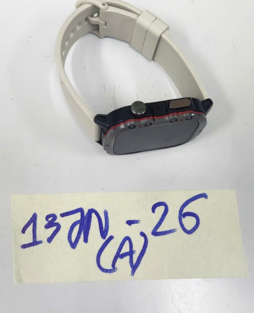 Ngày tiếp nhận: 25/01/2026 Mã hồ sơ: 137N2026A Mô tả: 01 đồng hồ thông minh màu đen, mặt đồng hồ hình chữ nhật, có chữ “SPORT R0hs”, dây cao su màu trắng. |
