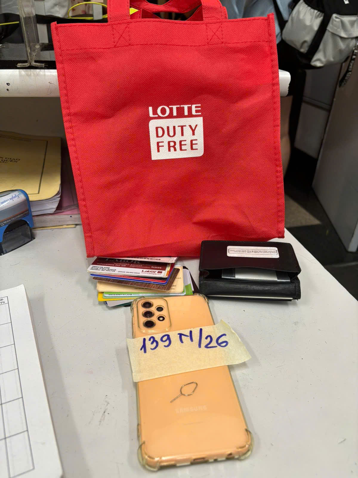 Ngày tiếp nhận: 25/01/2026 Mã hồ sơ: 139N2026 Mô tả: 01 túi vải màu đỏ qua sử dụng.01 (một) điện thoại di động có chữ “SAMSUNG” màu trắng qua sử dụng. |