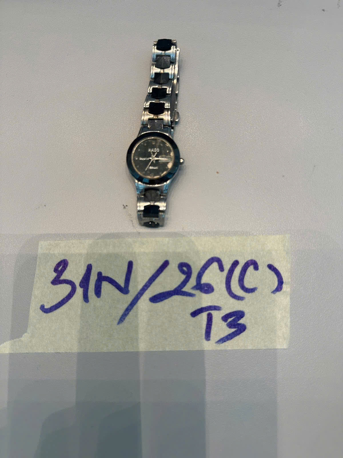 Ngày tiếp nhận: 25/01/2026 Mã hồ sơ: 31N2026C-T3 Mô tả: 01 đồng hồ chữ Rado mặt tròn, dây kim loại. |