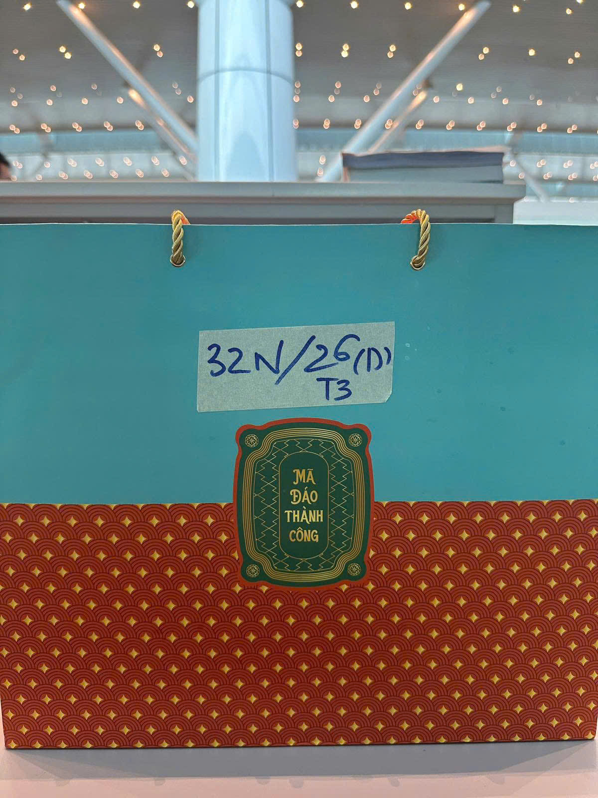 Ngày tiếp nhận: 25/01/2026 Mã hồ sơ: 32N2026D-T3 Mô tả: 01 túi quà màu xanh và cam có rượu và đồ ăn. |
