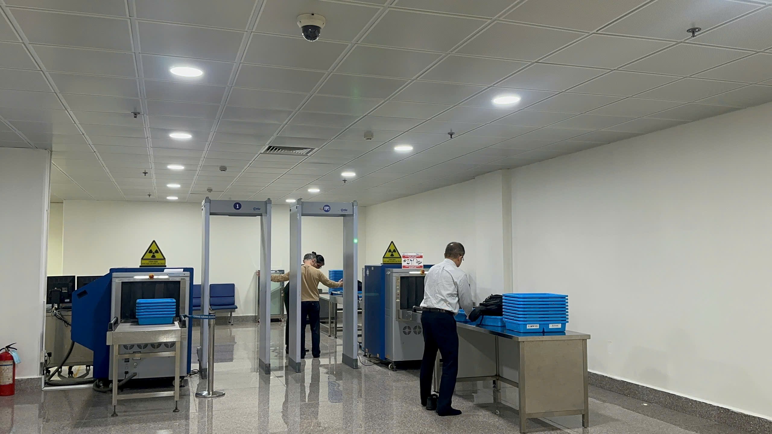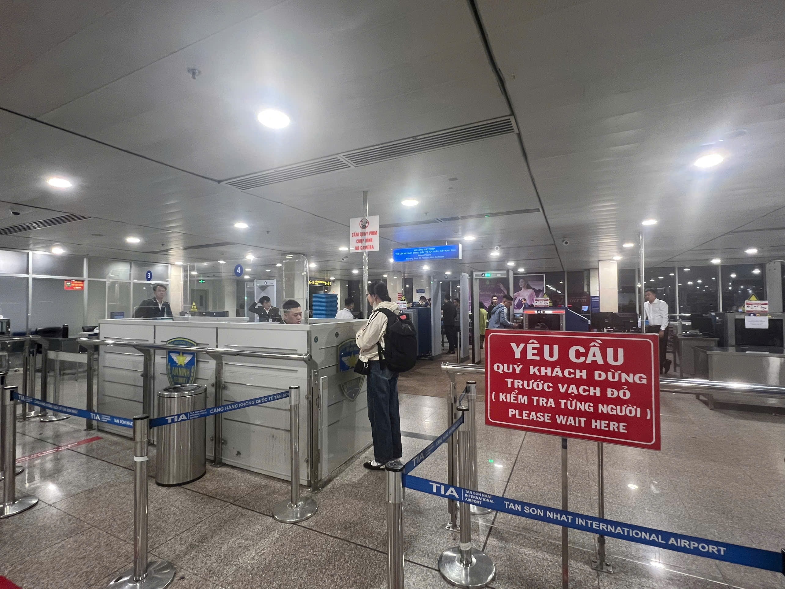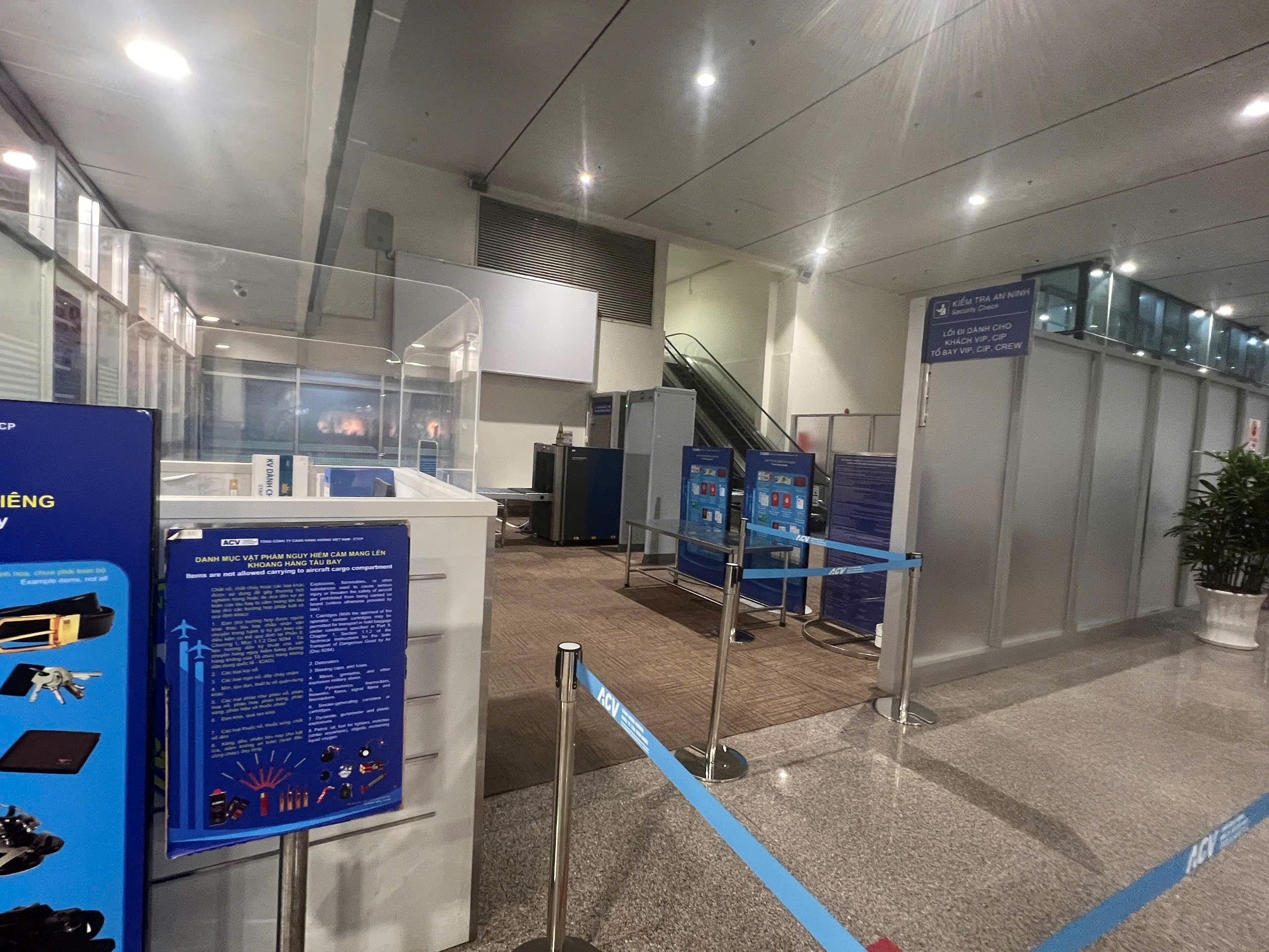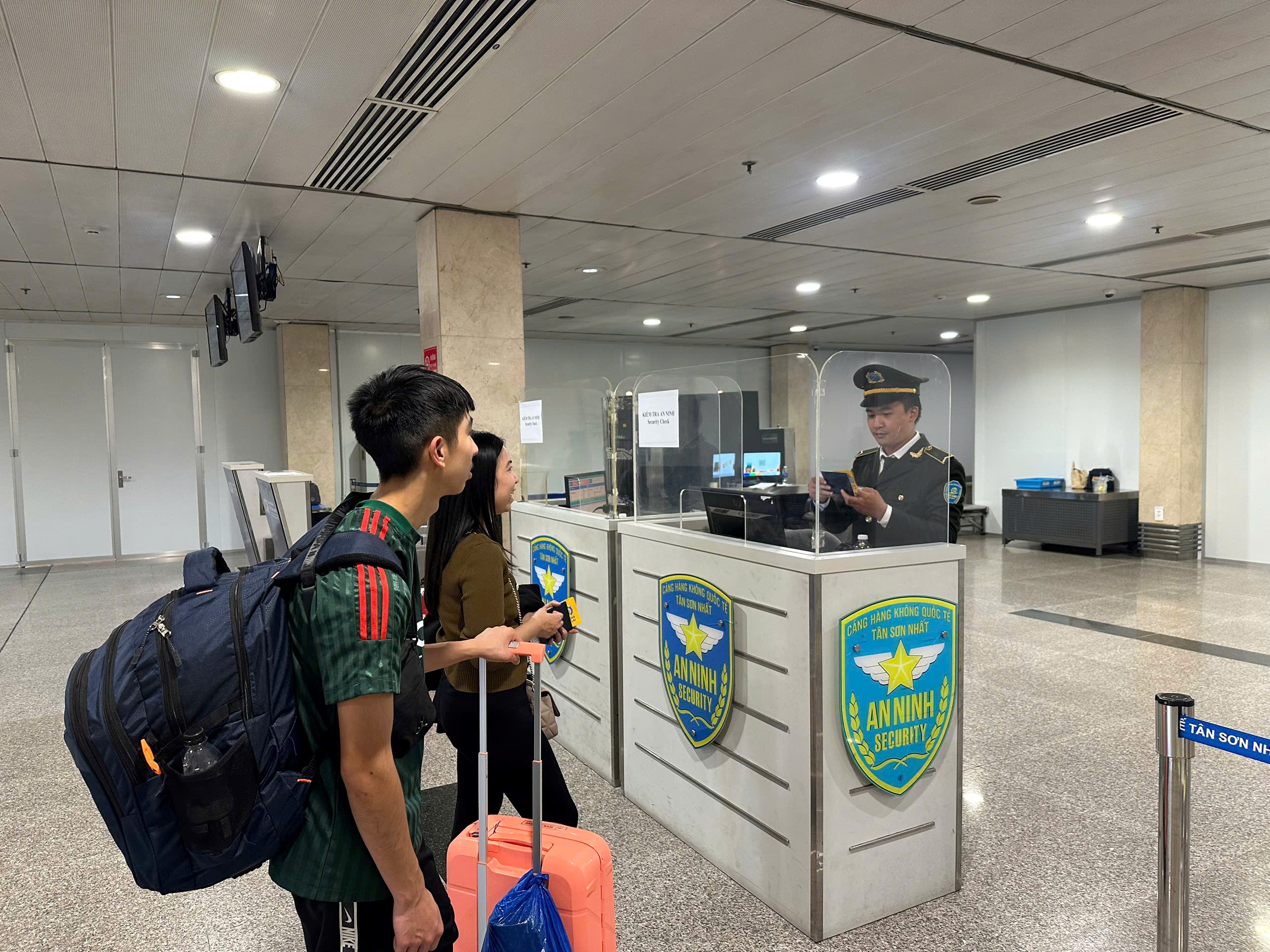 - Làm thủ tục check-in xong, hành khách và đặc biệt là khách đi theo Đoàn, nhóm đông cần khẩn trương xếp hàng vào cửa kiểm soát an ninh. Khách lưu ý tuân thủ hướng dẫn của nhân viên an ninh, tháo bỏ áo khoác, giày dép, thắt lưng, điện thoại, chìa khóa, các vật dụng kim loại… cho vào khay để qua máy soi chiếu tia X, kiểm tra lại các đồ đạc, tư trang, đảm bảo không để quên tại khu vực soi chiếu an ninh;