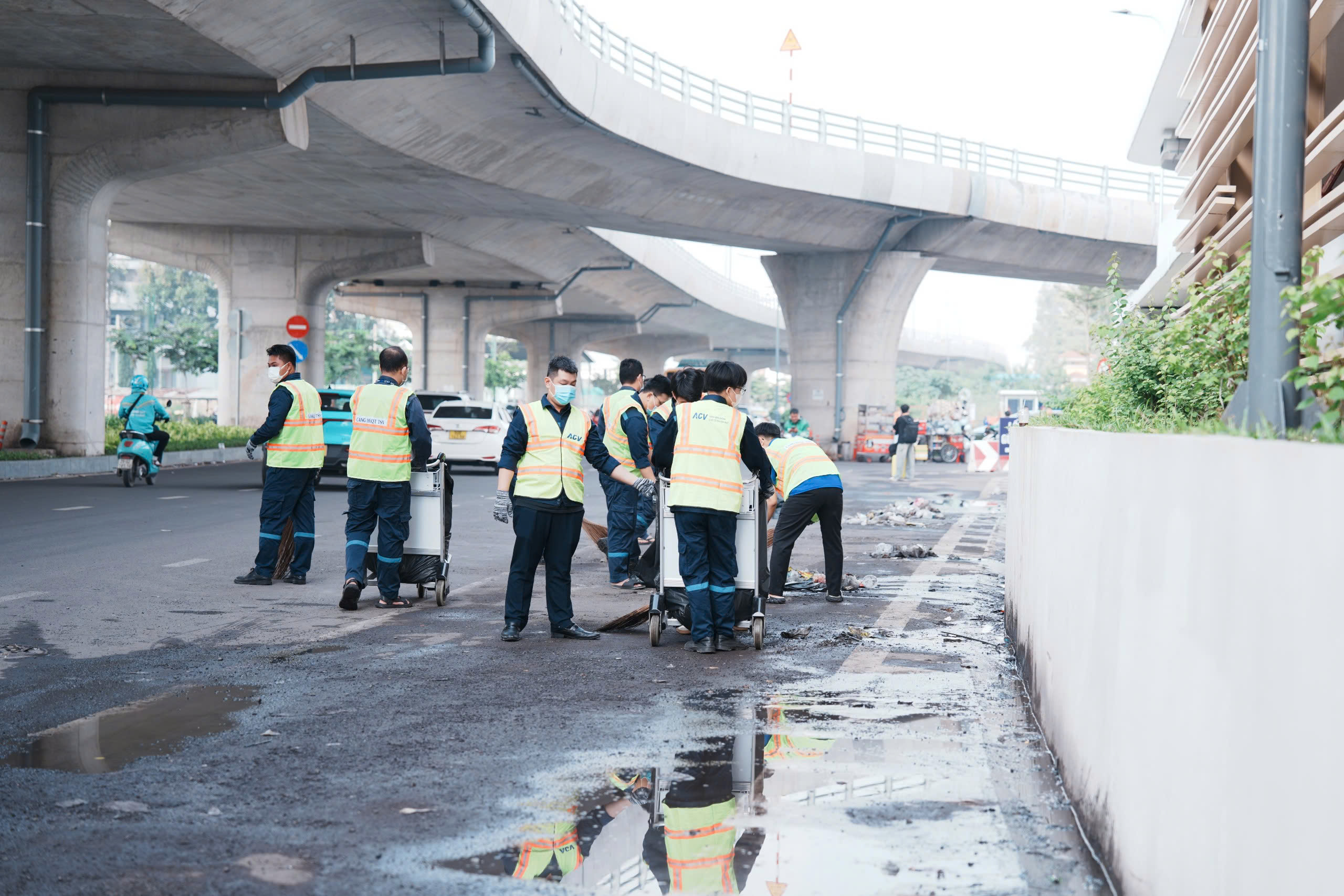 Làm vệ sinh tại mặt trước khu vực trạm thu phí Ôtô, bãi xe gắn máy tại nhà ga hành khách quốc nội T3 – Cảng HKQT Tân Sơn Nhất