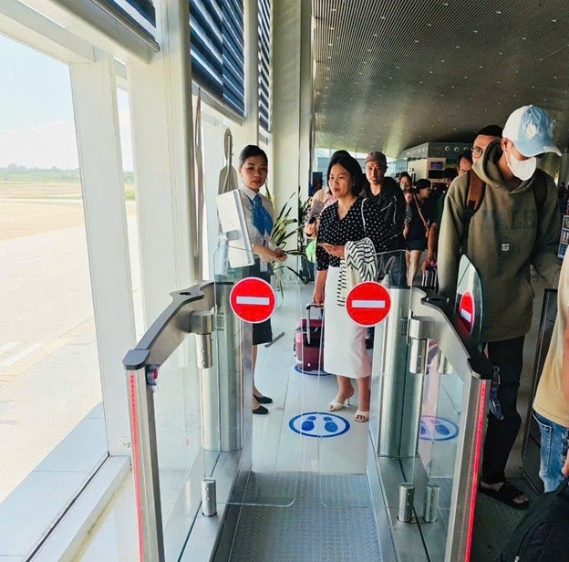 Từ ngày 1/8/2025, hành khách của Vietnam Airlines và Vietjet Air thông qua cảng HK Thọ Xuân có thể thực hiện các chuyến bay nội địa sử dụng sinh trắc học trên nền tảng VNeID để làm thủ tục hàng không, thay thế cho việc xuất trình giấy tờ như trước đây. Nhằm phục vụ tốt nhất nhu cầu di chuyển trong dịp cao điểm, Cảng Thọ Xuân đã phối hợp chặt chẽ với các đơn vị liên quan hoàn thành lắp đặt, vận hành hệ thống thiết bị Facepod tại 5 quầy check in, 1 máy Security Gate tại khu vực soi chiếu xách tay, kiểm tra an ninh và 1 máy boarding E- Gate tại của ra tàu bay số 1. Song song với việc áp dụng đua hệ thống vào hoạt động, ông Trần Sỹ Hiến – Giám đốc Cảng HK Thọ Xuân đã chỉ đạo các đơn vị: Phối hợp các đơn vị liên quan lập các điểm tuyên truyền, hỗ trợ hướng dẫn cho hành khách, treo băng zôn tuyên truyền kèm hình ảnh minh họa, giải thích một cách dế hiểu, dễ thực hiện nhất, thiết lập lối đi riêng cho hành khách sử dụng sinh chắc học tại điểm kiểm tra an ninh và cửa lên tàu bay.. Ngoài ra các đơn vị cần chủ động phân công nhóm nhân viên thường xuyên trực tại các điểm hướng dẫn, trong quá trình vận dụng hệ thống nếu hành khách đã xác thực vẫn có thể đi vào lối truyền thống.