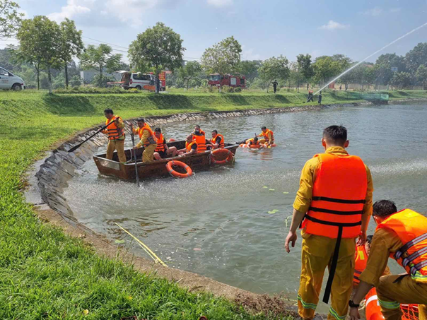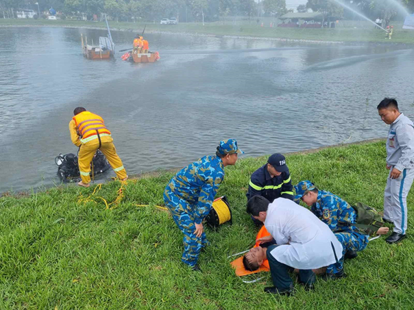 Tình huống giả định được xây dựng bám sát thực tế, đặt ra yêu cầu cao về phối hợp giữa các lực lượng chuyên môn, từ khâu phát hiện, báo động, điều phối ứng cứu, chữa cháy, cứu nạn cứu hộ dưới nước đến công tác y tế, bảo đảm an ninh trật tự.