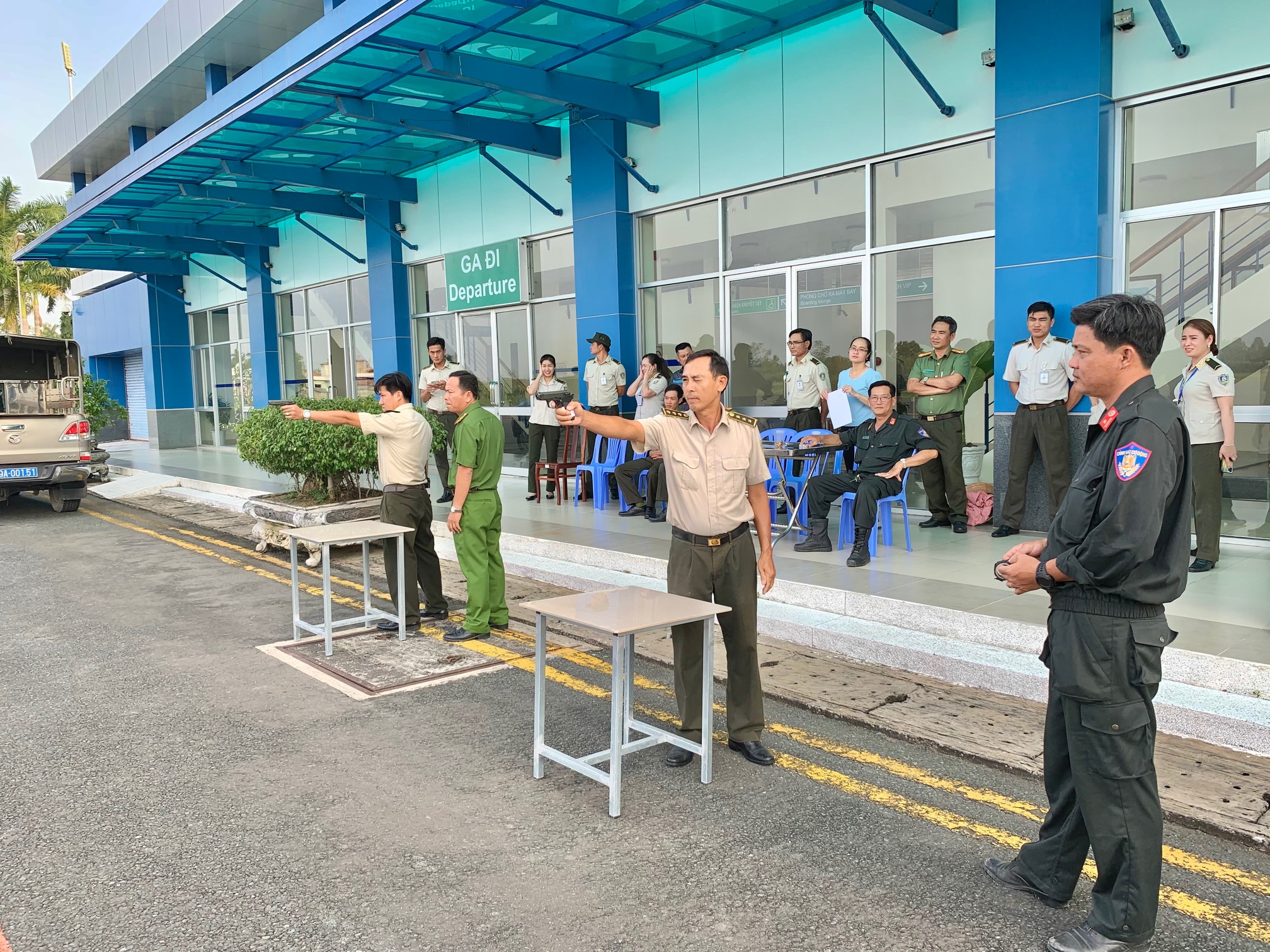 Nhằm tăng cường công tác bảo đảm an ninh an toàn hàn không, bảo đảm chất lượng phục vụ hành khách, đặc biệt trong dịp cao điểm Tết Nguyên đán Tân Sửu 2021, Cảng hàng không Cà Mau đã phối hợp với Phòng Cảnh sát cơ động – Công an tỉnh Cà Mau tổ chức khóa huấn luyện nghiệp vụ quản lý, sử dụng công cụ hỗ trợ, nhận biết chất nổ, phụ kiện nổ và bắn đạn thật cho lực lượng an ninh hàng không.