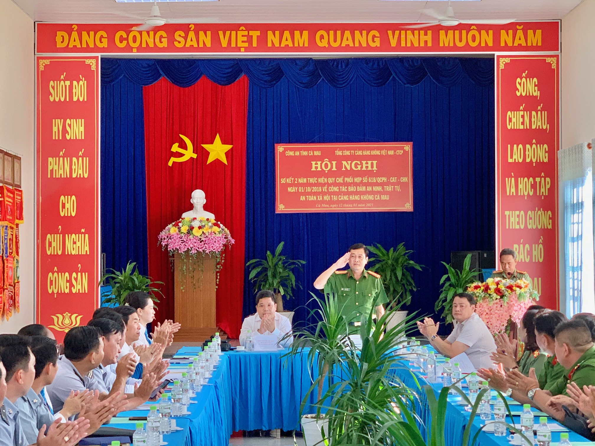 Ngày 12/01/2021, tại Cà Mau, Tổng công ty Cảng hàng không Việt Nam (ACV) và Công an tỉnh Cà Mau đã tổ chức hội nghị sơ kết 2 năm thực hiện Quy chế phối hợp trong công tác bảo đảm an ninh, an toàn hàng không và trật tự an toàn xã hội tại Cảng hàng không Cà Mau.