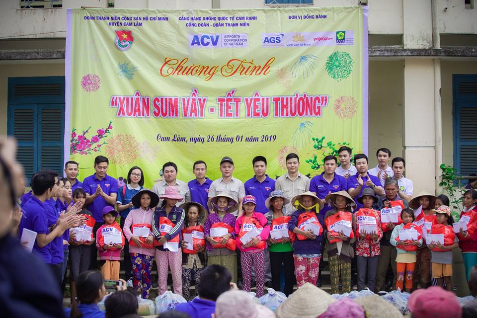 Chương trình xã hội từ thiện năm 2019 với chủ đề “Xuân sum vầy, Tết yêu thương” thành công tốt đẹp nhận được sự quan tâm và chỉ đạo của Đảng ủy – Ban Giám đốc Cảng HKQT Cam Ranh; sự ủng hộ từ tập thể, cá nhân cán bộ, nhân viên Cảng HKQT Cam Ranh, các đơn vị đang hoạt động tại địa bàn Cảng như Công ty cổ phần mặt đất Sài Gòn – Cam Ranh (SAGS – CXR), Công ty TNHH dịch vụ mặt đất hàng không (AGS), đại diện hãng hàng không Vietnam Airlines, Vietjet tại sân bay Cam Ranh.
