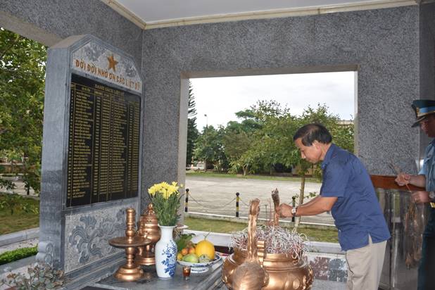 Tại Đài tưởng niệm các anh hùng liệt sỹ Trung đoàn Không quân 923, Đoàn đã đặt vòng hoa, dâng hương tưởng niệm các liệt sỹ đã hy sinh vì sự nghiệp giải phóng dân tộc và làm nhiệm vụ quốc tế cao cả. Sau lễ dâng hương, các thành viên trong đoàn đã thắp hương lên từng phần mộ của các anh hùng liệt sỹ.