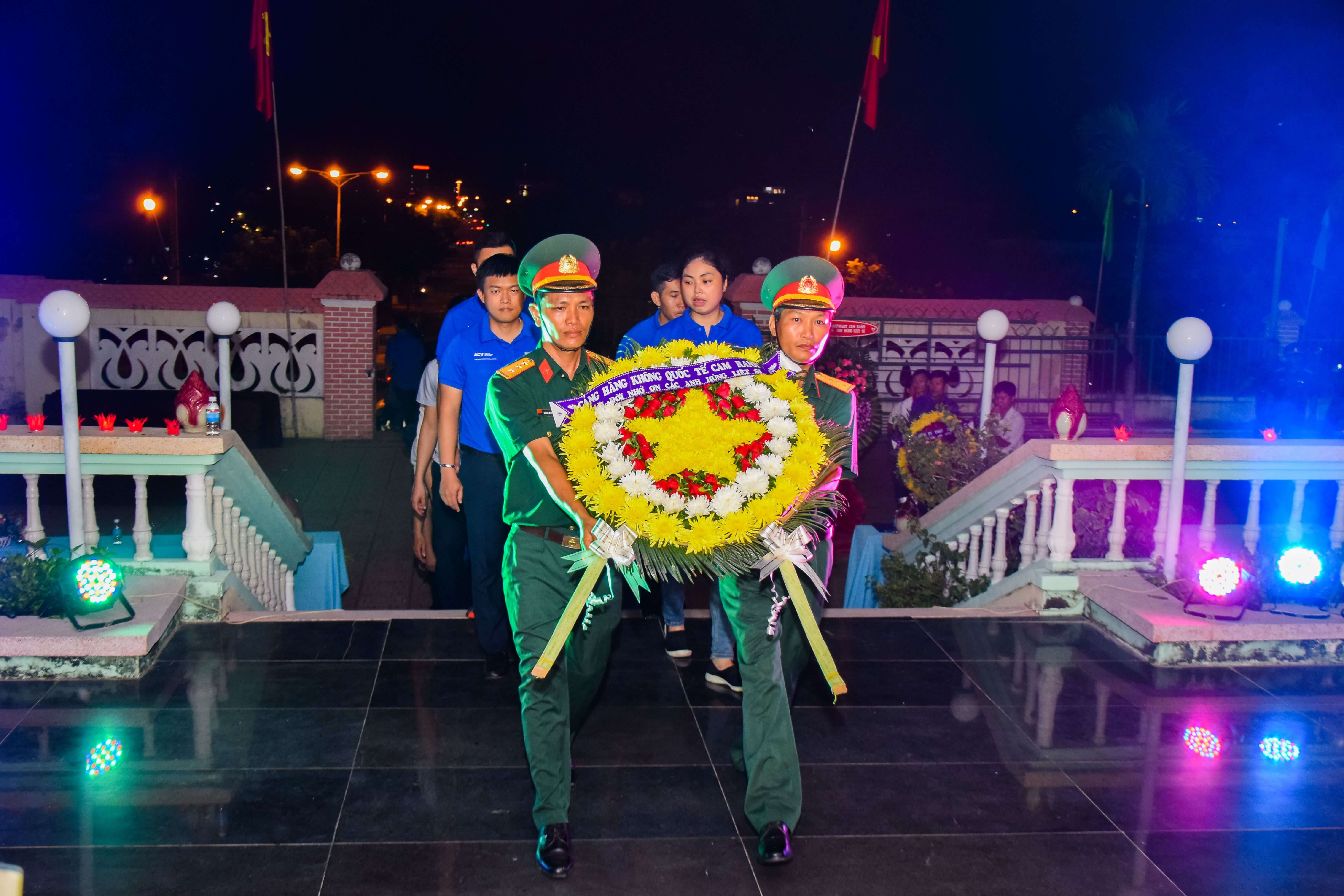 Chiều cùng ngày, Đoàn thanh niên Cảng HKQT Cam Ranh cùng các đồng chí đoàn viên ưu tú đã tham gia buổi lễ dâng hương tưởng niệm tại Nghĩa trang liệt sỹ thành phố Cam Ranh do thành đoàn thành phố Cam Ranh tổ chức.