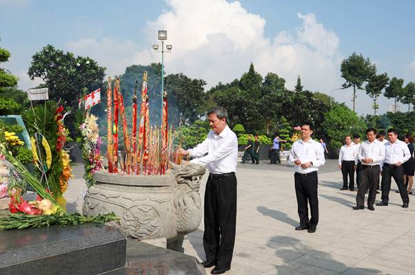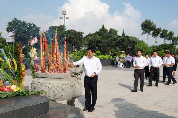 Hình ảnh đoàn CBCNV Khối cơ quan Tổng công ty làm lễ tưởng nhớ, tri ân các anh hùng liệt sĩ tại Nghĩa trang liệt sĩ Thành phồ Hồ Chí Minh:
