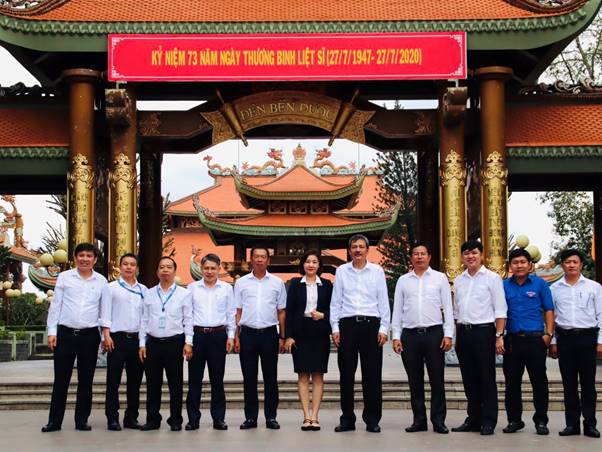 Hình ảnh đoàn CBCNV Khối cơ quan Tổng công ty làm lễ tưởng nhớ, tri ân các anh hùng liệt sĩ tại Đền Bến Dược, huyện Củ Chi, Thành phố Hồ Chí Minh: