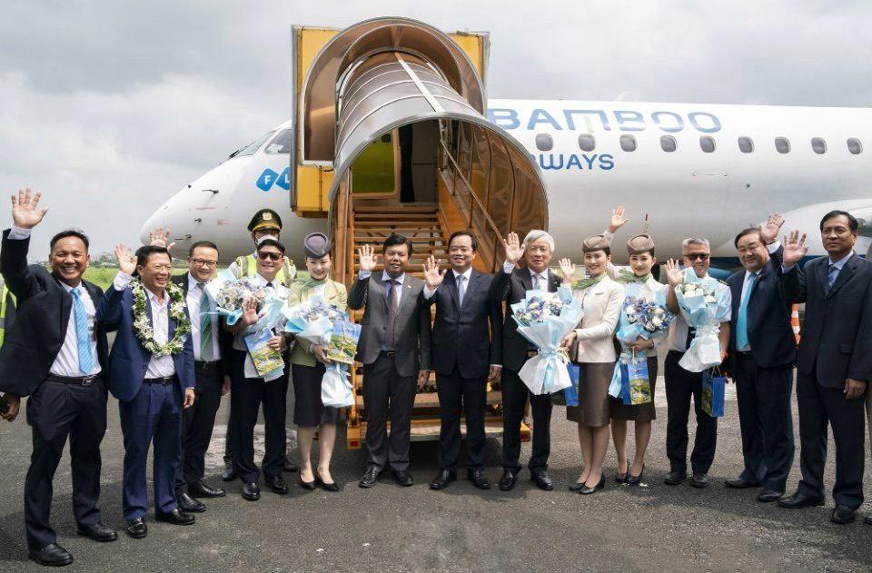 Lãnh đạo tỉnh Cà Mau tặng hoa chúc mừng cho tổ bay Bamboo Airways