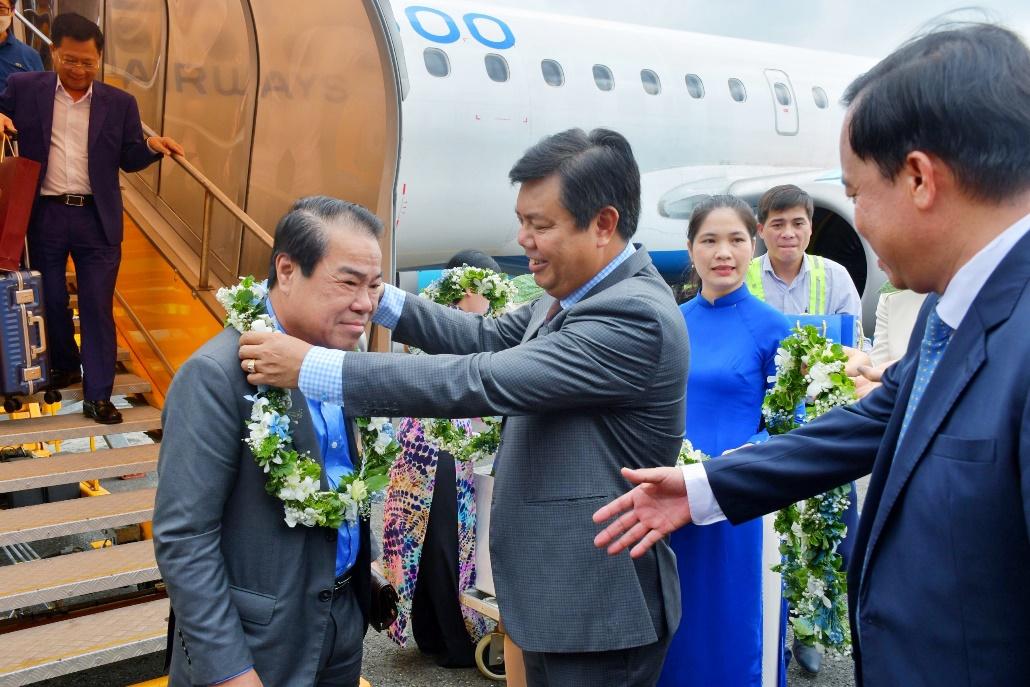Lãnh đạo tỉnh Cà Mau tặng hoa chúc mừng cho những hành khách đầu tiên đáp chuyến bay Hà Nội – Cà Mau