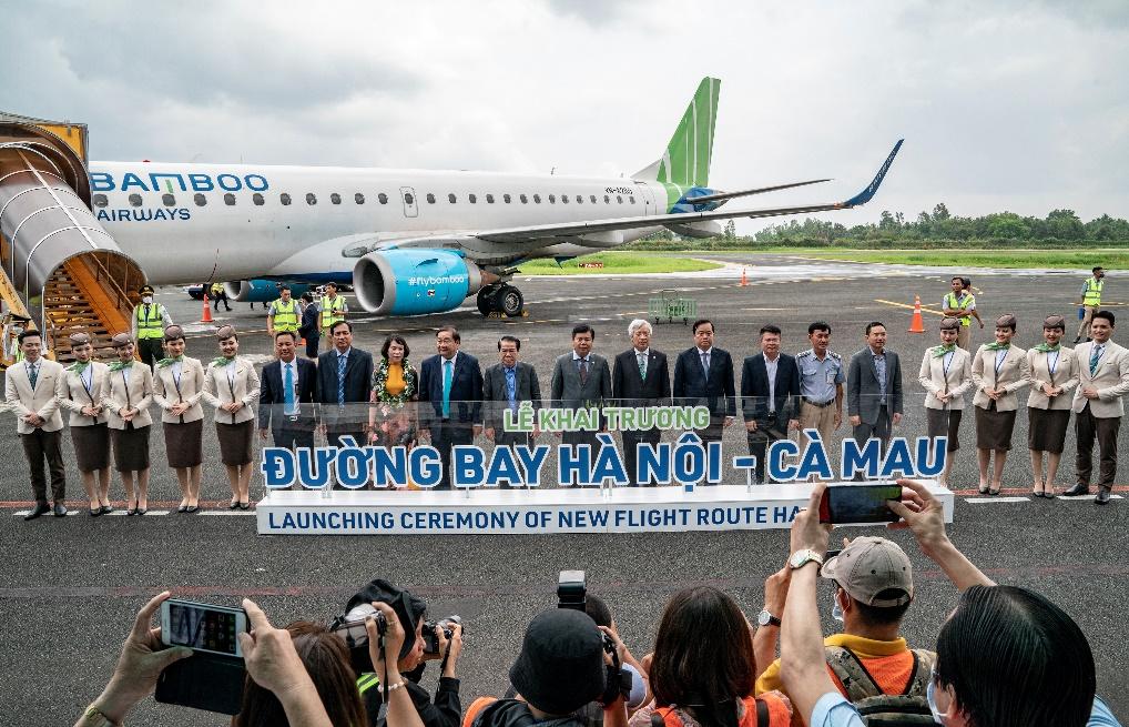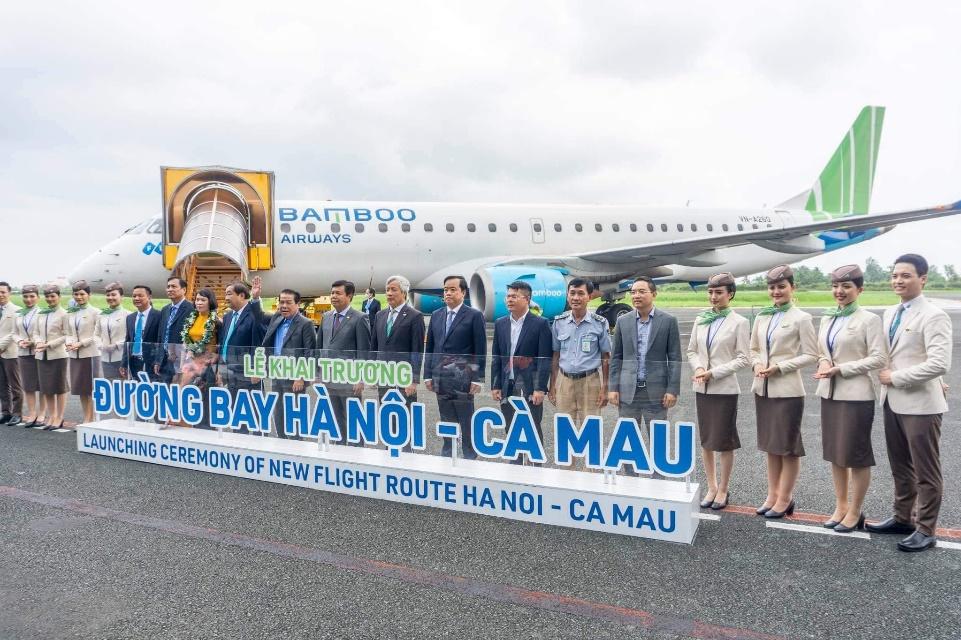 Vào lúc 10h00 ngày 29/04/2023, Cảng hàng không Cà Mau chào đón chuyến bay số hiệu QH1281 của Bamboo Airways từ Thủ đô Hà Nội hạ cánh xuống sân bay Cà Mau. Đường bay Hà Nội – Cà Mau – Hà Nội khai thác tuần suất 3 chuyến/tuần, thời gian bay hơn 2 giờ. Tần suất khai thác sẽ tăng dần tùy theo điều kiện thưc tế và nhu cầu của hành khách.