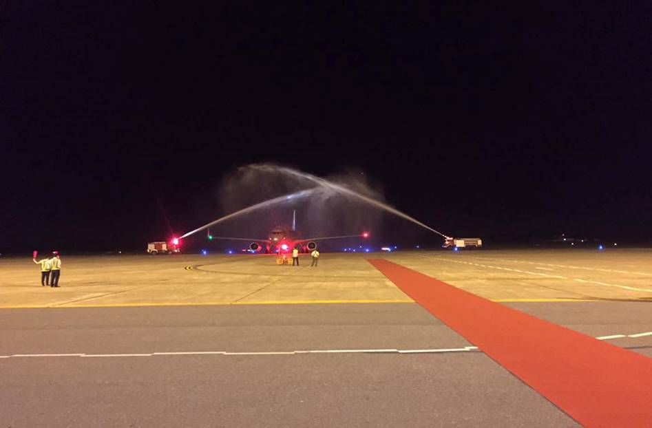 Chuyến bay trong ngày khai trương đường bay Đồng Hới – Chiang Mai của Jetstar Pacific Airlines hạ cánh tại Cảng hàng không Đồng Hới