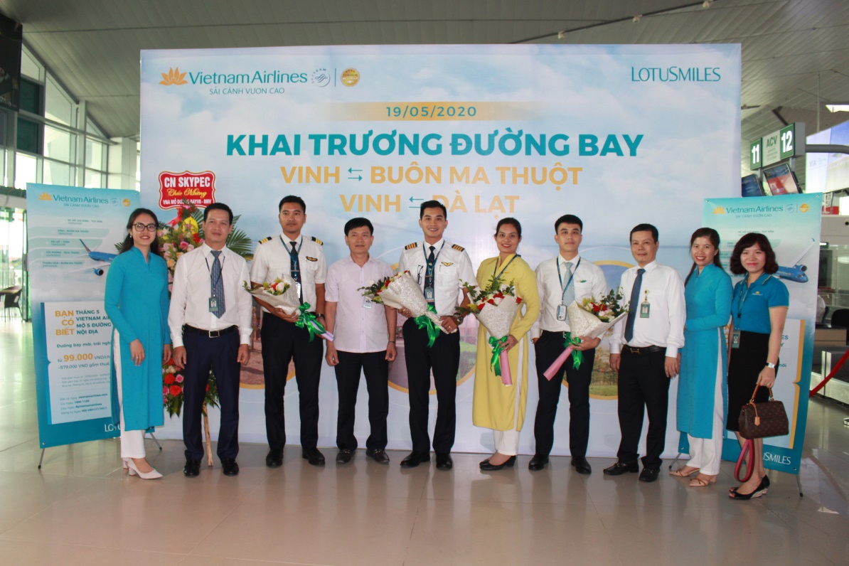 Nhân dịp kỷ niệm 130 năm ngày sinh Chủ tịch Hồ Chí Minh (19/5/1890 – 19/5/2020), Cảng HKQT Vinh đã phối hợp với hãng hàng không Vietnam Airlines tổ chức khai trương 02 đường bay mới: Vinh – Đà Lạt và Vinh – Buôn Ma Thuột. Thay mặt lãnh đạo Cảng HKQT Vinh, ông Hoàng Văn Thư, Giám đốc Cảng đã tặng hoa và chụp ảnh lưu niệm với tổ bay.