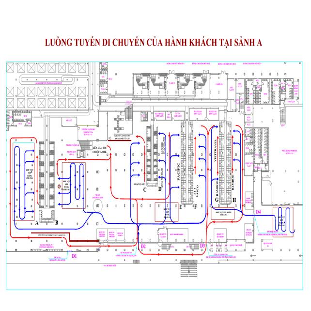 - Hành khách của Vietnam Airlines làm thủ tục tại đảo A/B/C/D.