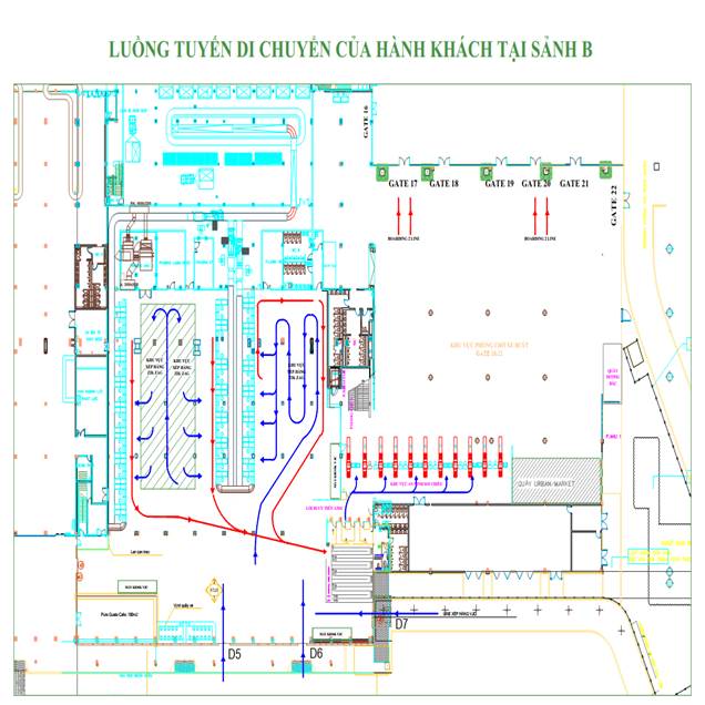 Đề nghị hành khách xếp hàng, giữ trật tự, di chuyển theo luồng tuyến/lối đi đã được bố trí khi làm thủ tục và kiểm tra an ninh. Tuân thủ nghiêm túc các hướng dẫn của lực lượng kiểm soát an ninh hàng không.