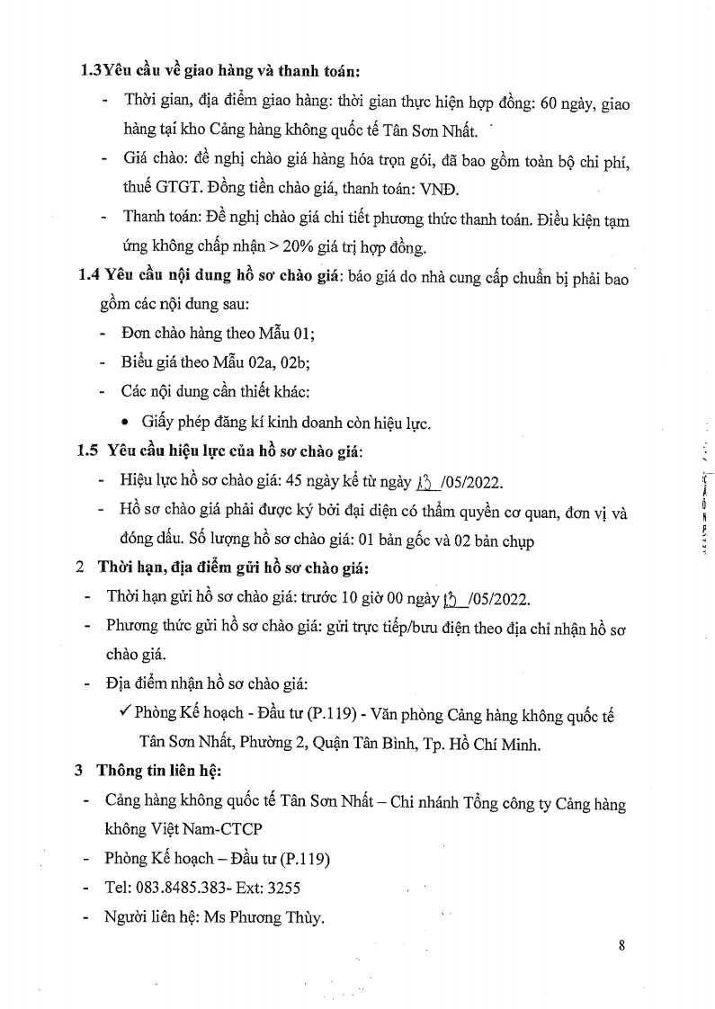 TBMCG: "Cung cấp hiện vật phụ cấp độc hại năm 2026 - Cảng HKQT Liên Khương"