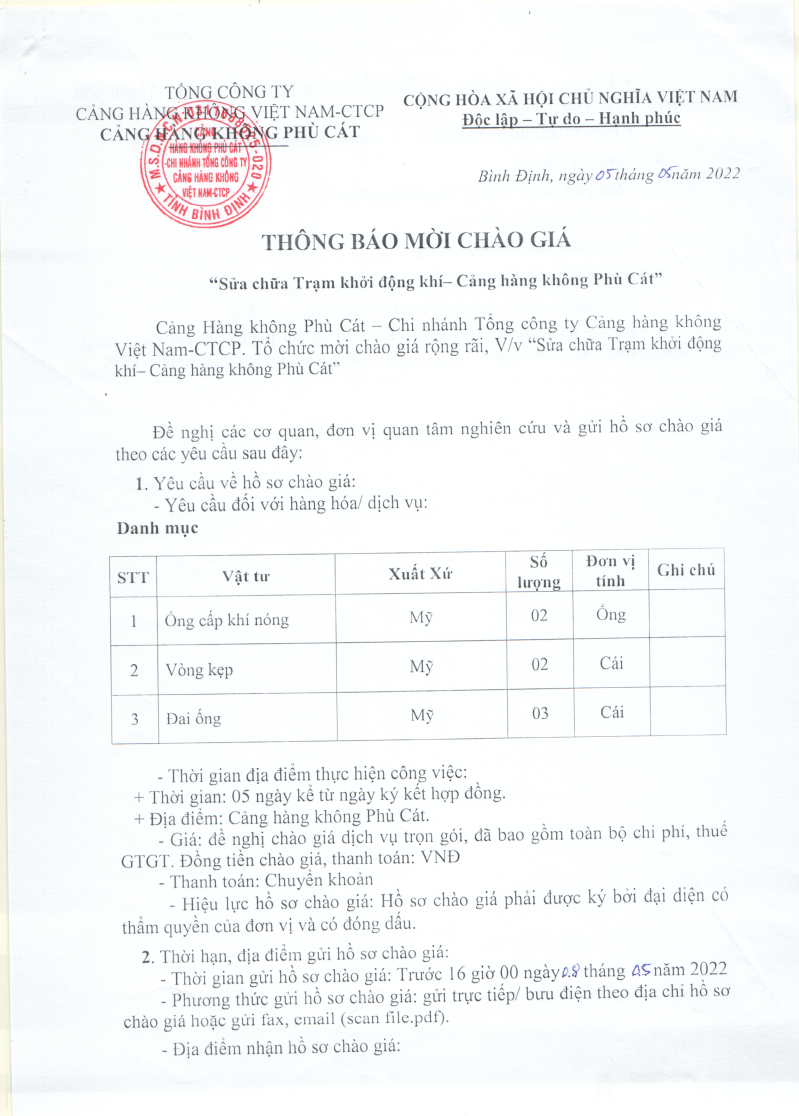TBMCG: "Sửa chữa Trạm khởi động khí - Cảng hàng không Phù Cát".